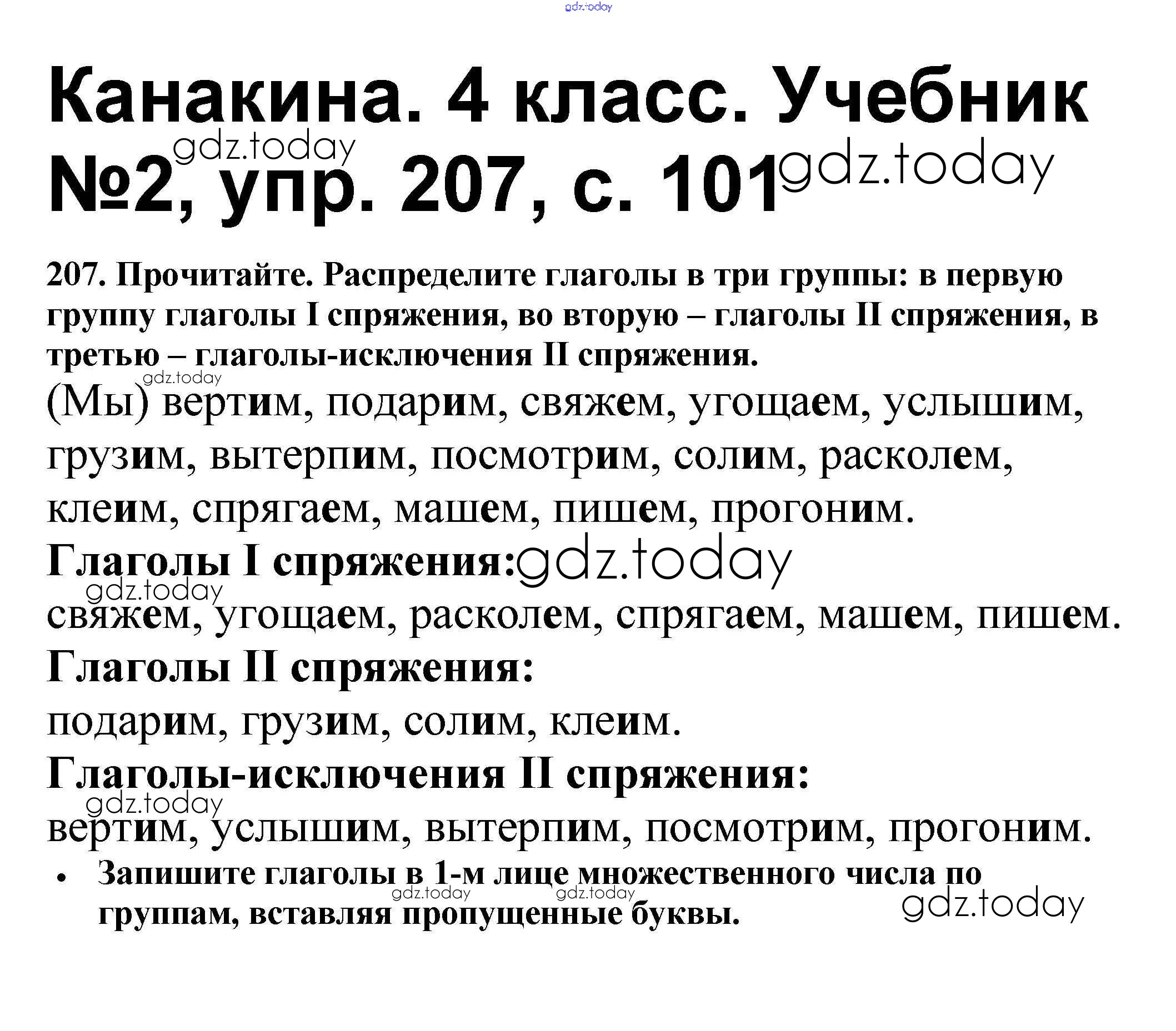 На страницах сайта gdz.today вы найдете учебный и вспомогательный материал, направленный на улучшения знаний школьной программы. ГДЗ - онлайн мир знаний Решение к части 2 207 Учебнику по Русскому языку для 4 класса Канакина, Горецкий Просвещение Школа России 2015