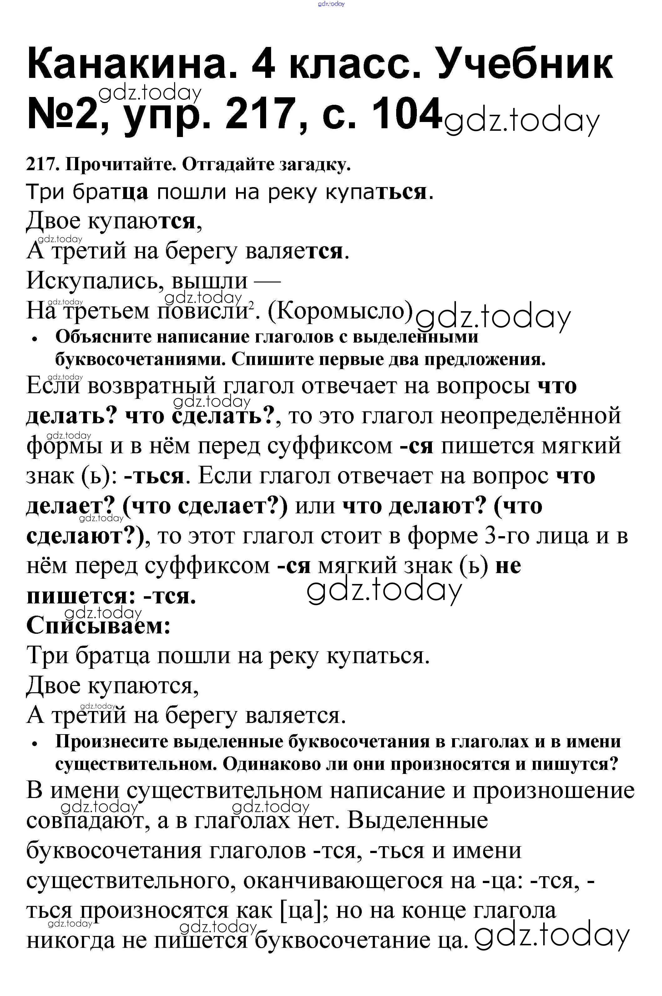 На страницах сайта gdz.today вы найдете учебный и вспомогательный материал, направленный на улучшения знаний школьной программы. ГДЗ - онлайн мир знаний Решение к части 2 217 Учебнику по Русскому языку для 4 класса Канакина, Горецкий Просвещение Школа России 2015