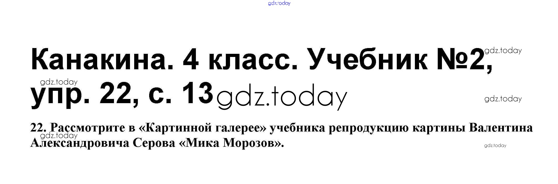 На страницах сайта gdz.today вы найдете учебный и вспомогательный материал, направленный на улучшения знаний школьной программы. ГДЗ - онлайн мир знаний Решение к части 2 22 Учебнику по Русскому языку для 4 класса Канакина, Горецкий Просвещение Школа России 2015