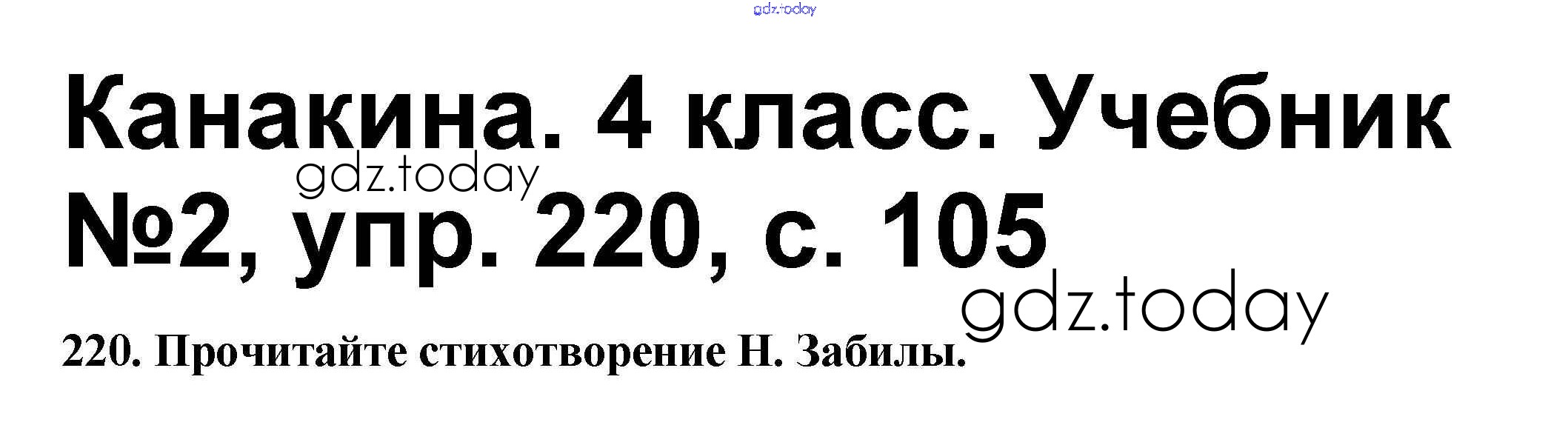 На страницах сайта gdz.today вы найдете учебный и вспомогательный материал, направленный на улучшения знаний школьной программы. ГДЗ - онлайн мир знаний Решение к части 2 220 Учебнику по Русскому языку для 4 класса Канакина, Горецкий Просвещение Школа России 2015
