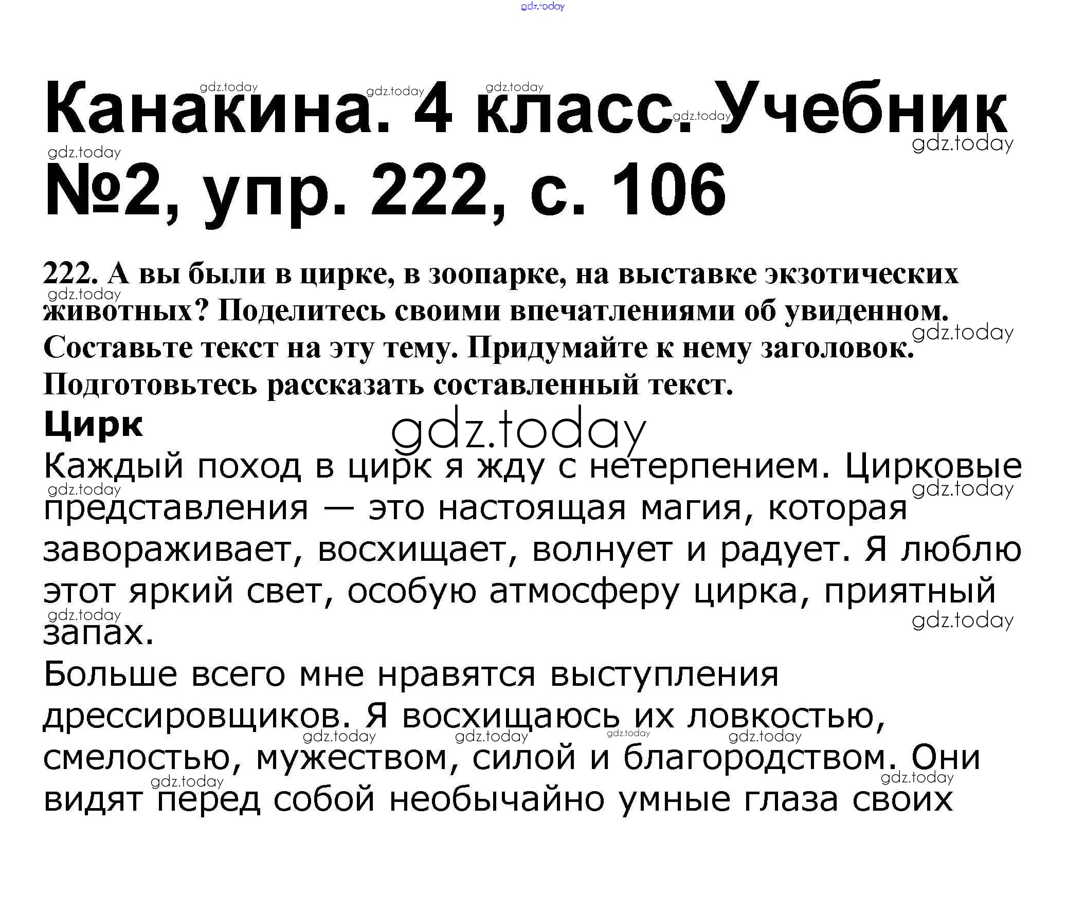 На страницах сайта gdz.today вы найдете учебный и вспомогательный материал, направленный на улучшения знаний школьной программы. ГДЗ - онлайн мир знаний Решение к части 2 222 Учебнику по Русскому языку для 4 класса Канакина, Горецкий Просвещение Школа России 2015