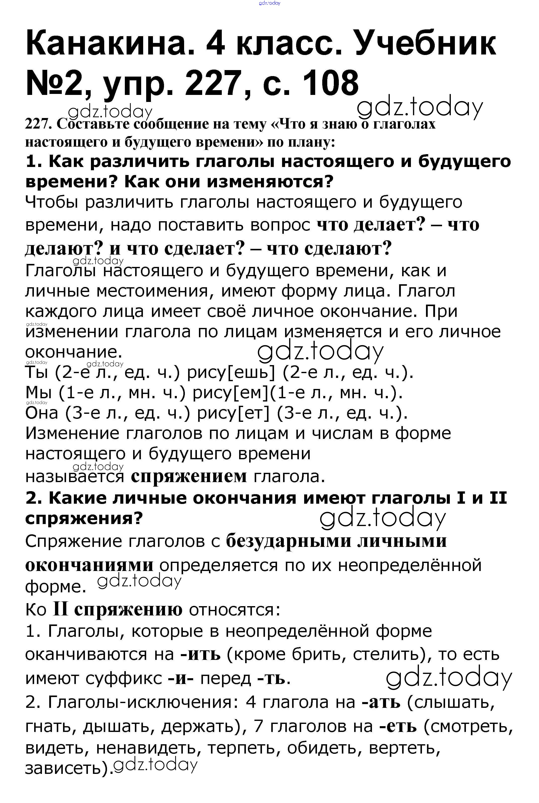 На страницах сайта gdz.today вы найдете учебный и вспомогательный материал, направленный на улучшения знаний школьной программы. ГДЗ - онлайн мир знаний Решение к части 2 227 Учебнику по Русскому языку для 4 класса Канакина, Горецкий Просвещение Школа России 2015