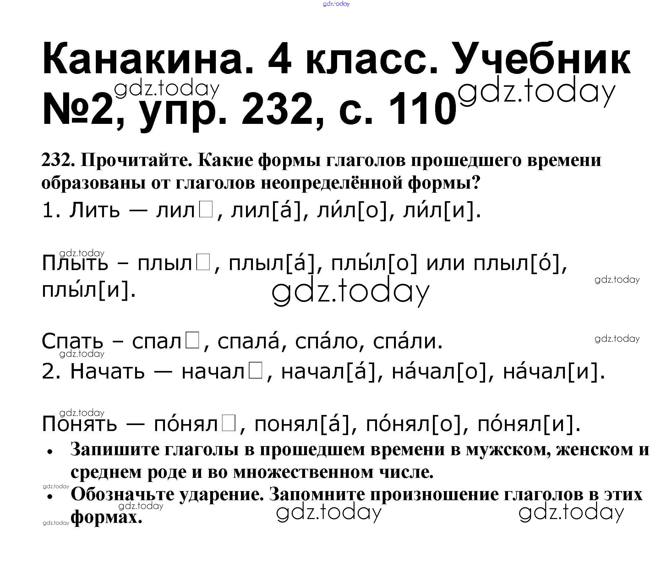 Ответы к Решение к части 2 232 Учебнику по Русскому языку для 4 класса Канакина, Горецкий Просвещение Школа России 2015