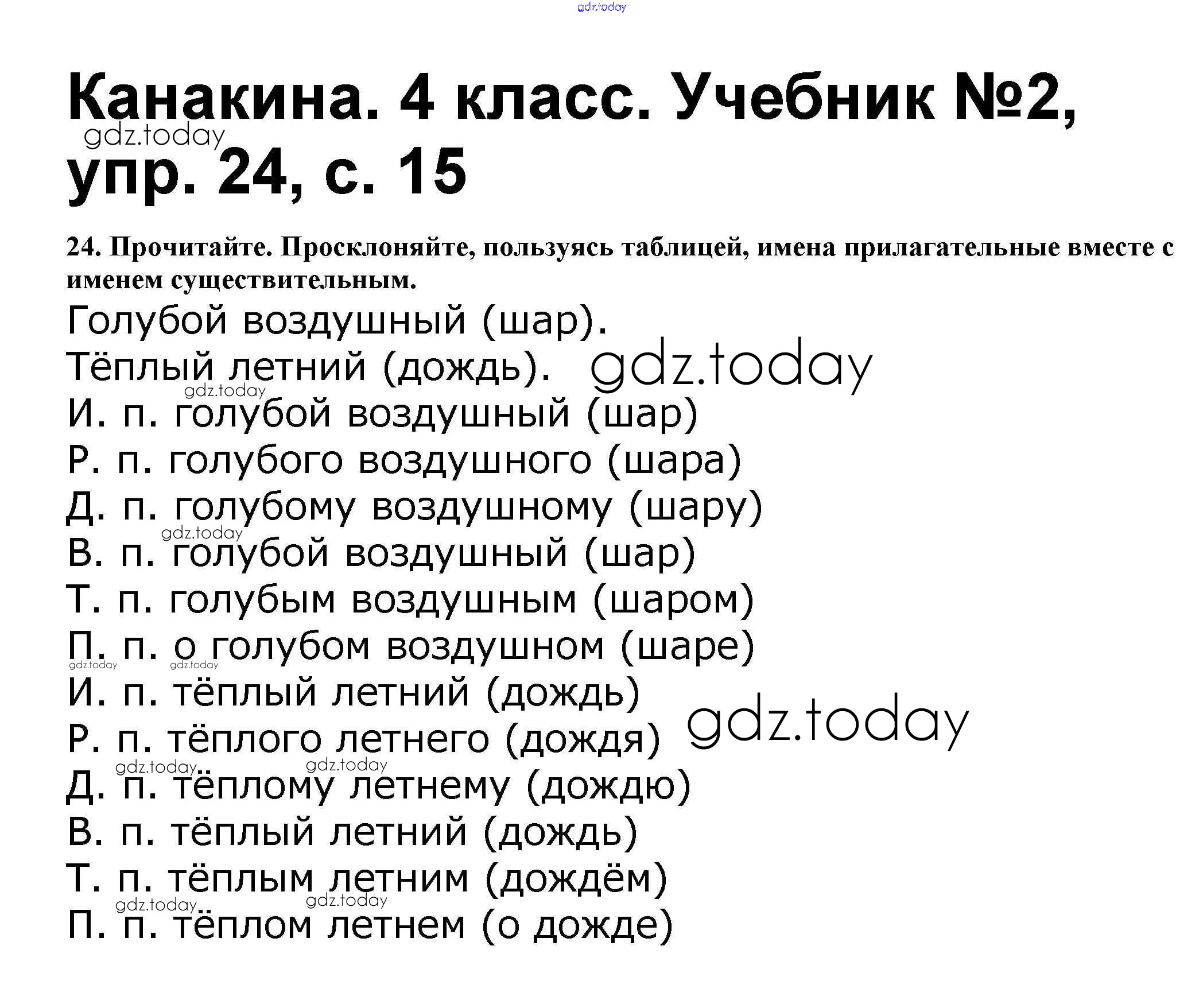 На страницах сайта gdz.today вы найдете учебный и вспомогательный материал, направленный на улучшения знаний школьной программы. ГДЗ - онлайн мир знаний Решение к части 2 24 Учебнику по Русскому языку для 4 класса Канакина, Горецкий Просвещение Школа России 2015