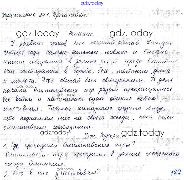 На страницах сайта gdz.today вы найдете учебный и вспомогательный материал, направленный на улучшения знаний школьной программы. ГДЗ - онлайн мир знаний Решение к части 2 241 Учебнику по Русскому языку для 4 класса Канакина, Горецкий Просвещение Школа России 2015