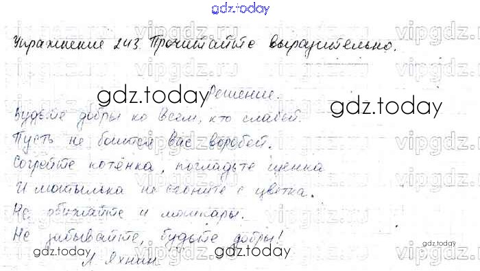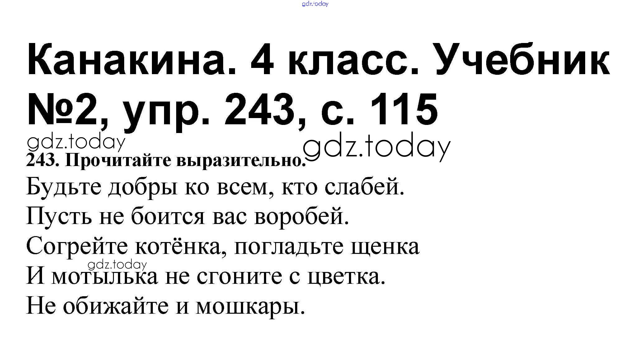 На страницах сайта gdz.today вы найдете учебный и вспомогательный материал, направленный на улучшения знаний школьной программы. ГДЗ - онлайн мир знаний Решение к части 2 243 Учебнику по Русскому языку для 4 класса Канакина, Горецкий Просвещение Школа России 2015