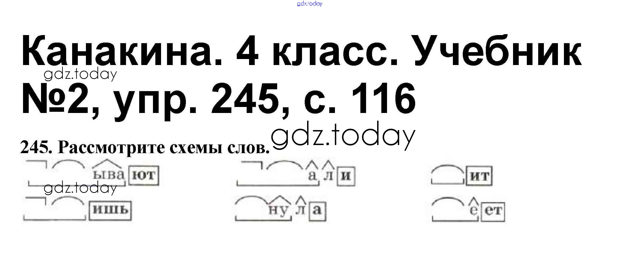 На страницах сайта gdz.today вы найдете учебный и вспомогательный материал, направленный на улучшения знаний школьной программы. ГДЗ - онлайн мир знаний Решение к части 2 245 Учебнику по Русскому языку для 4 класса Канакина, Горецкий Просвещение Школа России 2015