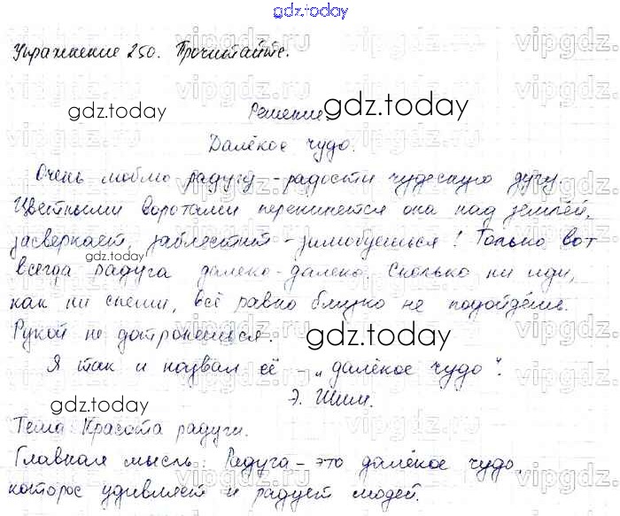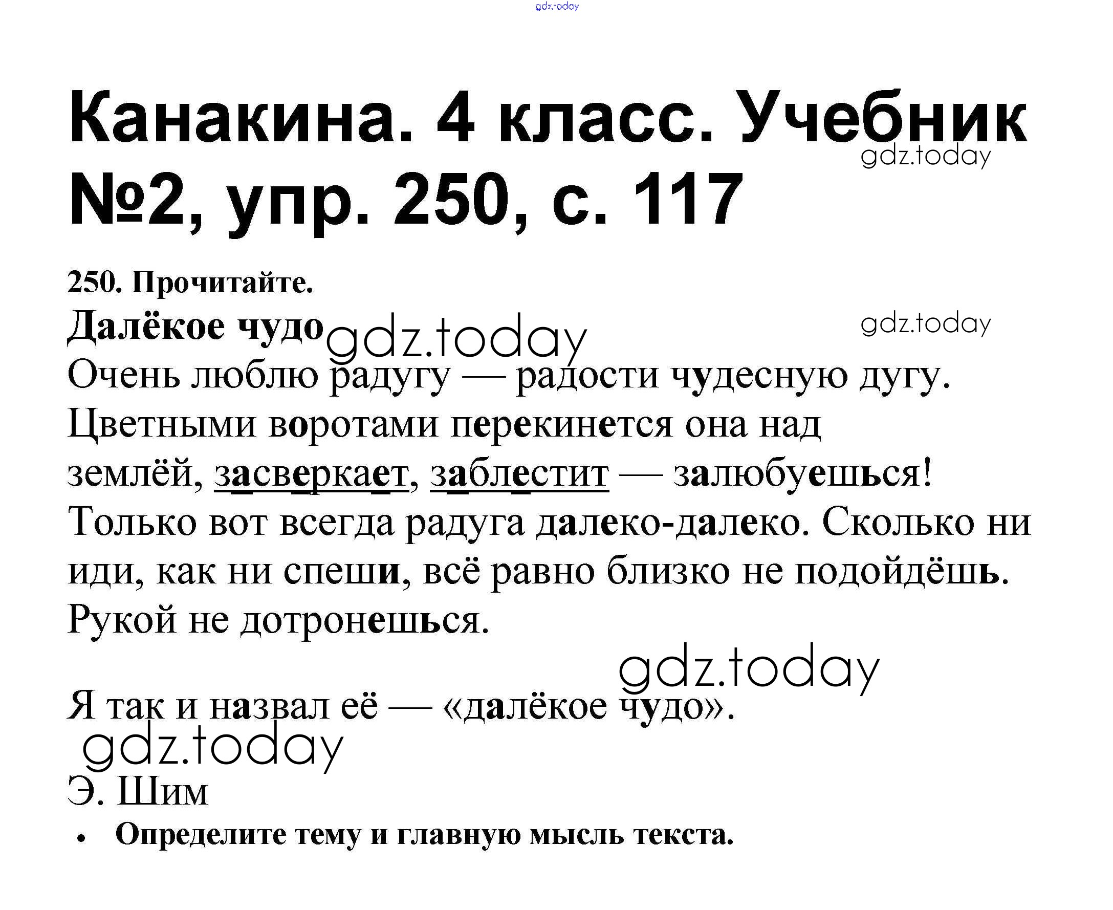 На страницах сайта gdz.today вы найдете учебный и вспомогательный материал, направленный на улучшения знаний школьной программы. ГДЗ - онлайн мир знаний Решение к части 2 250 Учебнику по Русскому языку для 4 класса Канакина, Горецкий Просвещение Школа России 2015