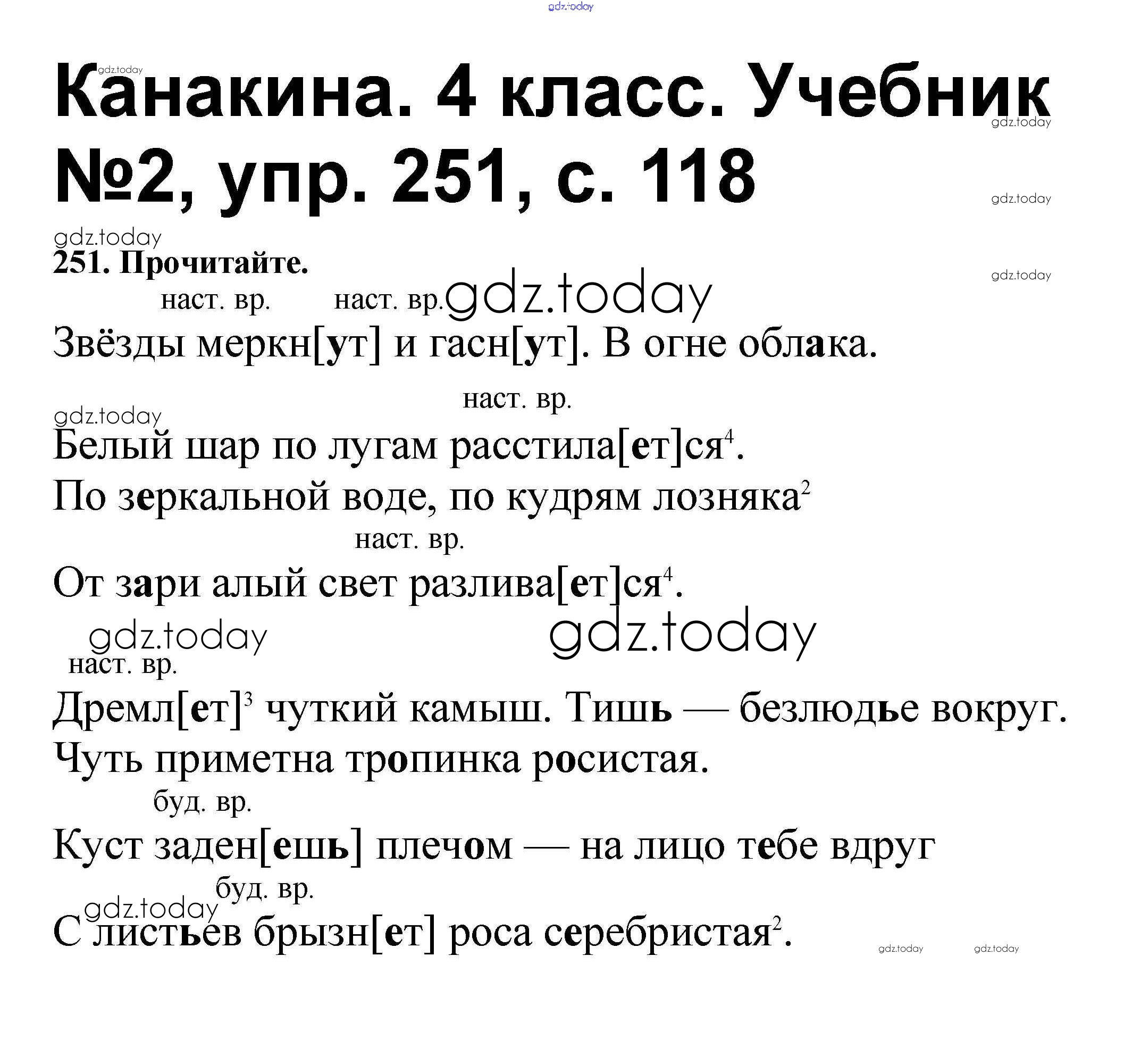 На страницах сайта gdz.today вы найдете учебный и вспомогательный материал, направленный на улучшения знаний школьной программы. ГДЗ - онлайн мир знаний Решение к части 2 251 Учебнику по Русскому языку для 4 класса Канакина, Горецкий Просвещение Школа России 2015