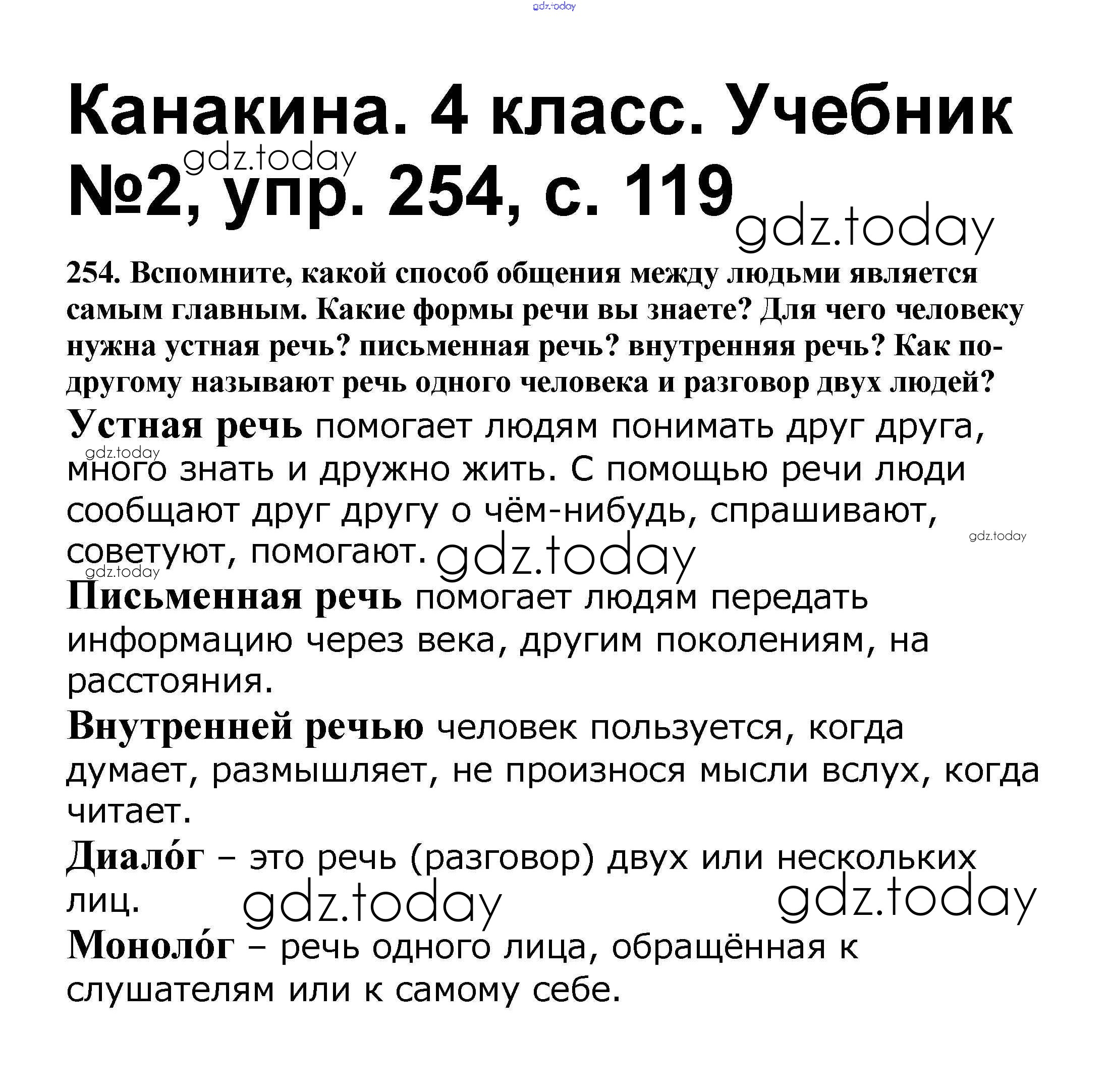 На страницах сайта gdz.today вы найдете учебный и вспомогательный материал, направленный на улучшения знаний школьной программы. ГДЗ - онлайн мир знаний Решение к части 2 254 Учебнику по Русскому языку для 4 класса Канакина, Горецкий Просвещение Школа России 2015