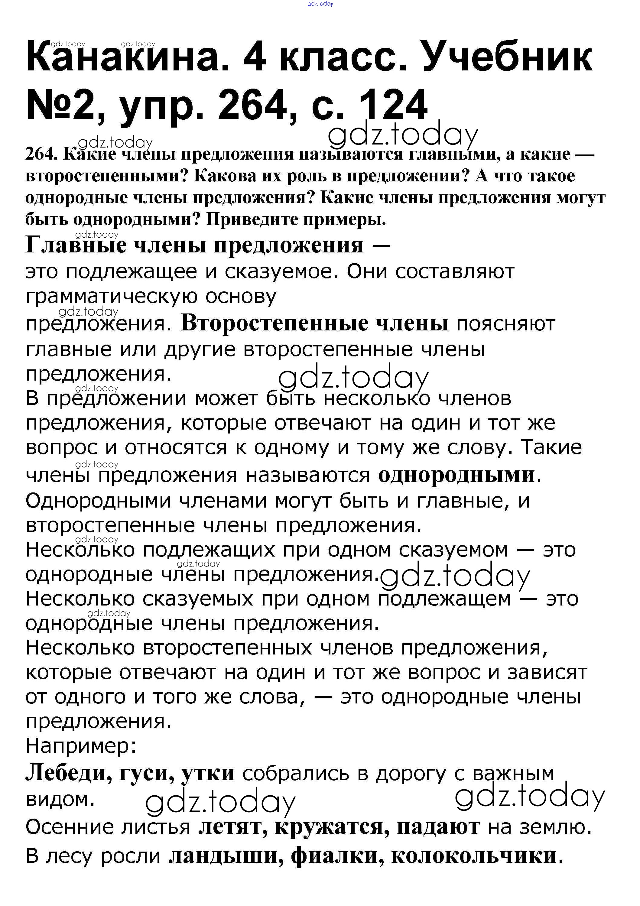 На страницах сайта gdz.today вы найдете учебный и вспомогательный материал, направленный на улучшения знаний школьной программы. ГДЗ - онлайн мир знаний Решение к части 2 264 Учебнику по Русскому языку для 4 класса Канакина, Горецкий Просвещение Школа России 2015