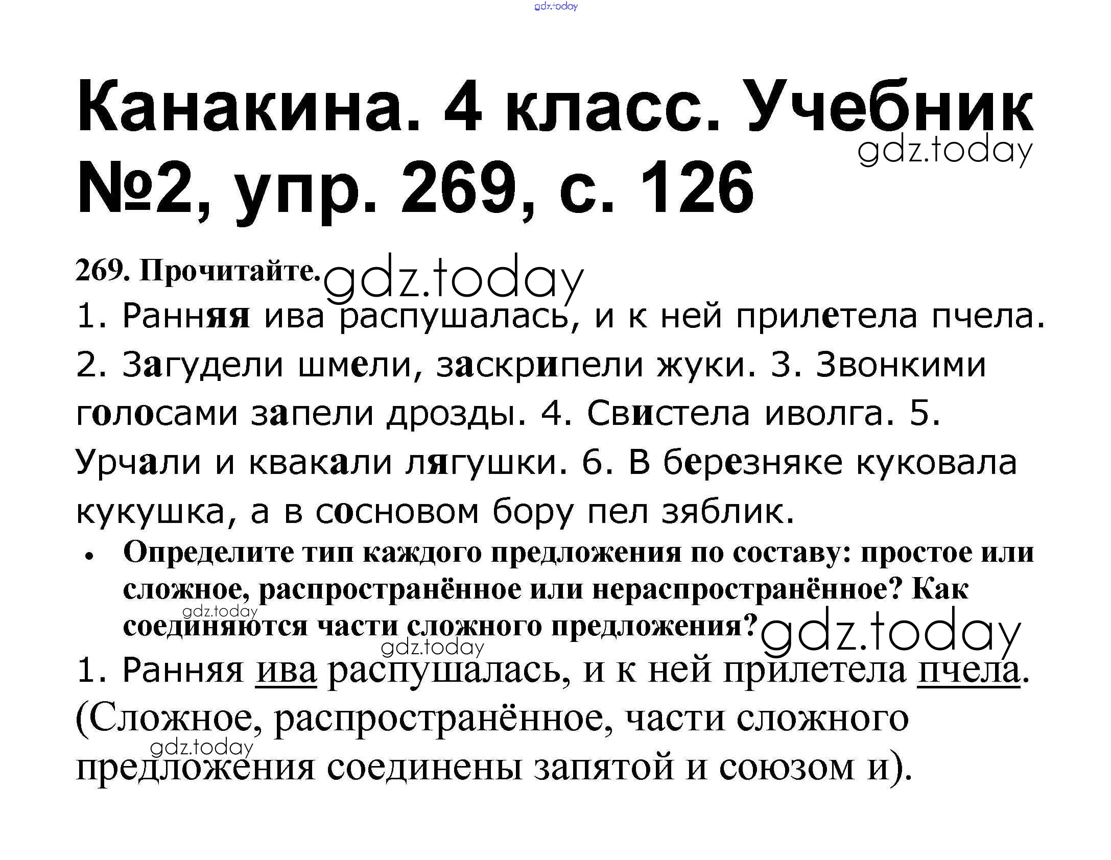 Ответы к Решение к части 2 269 Учебнику по Русскому языку для 4 класса Канакина, Горецкий Просвещение Школа России 2015
