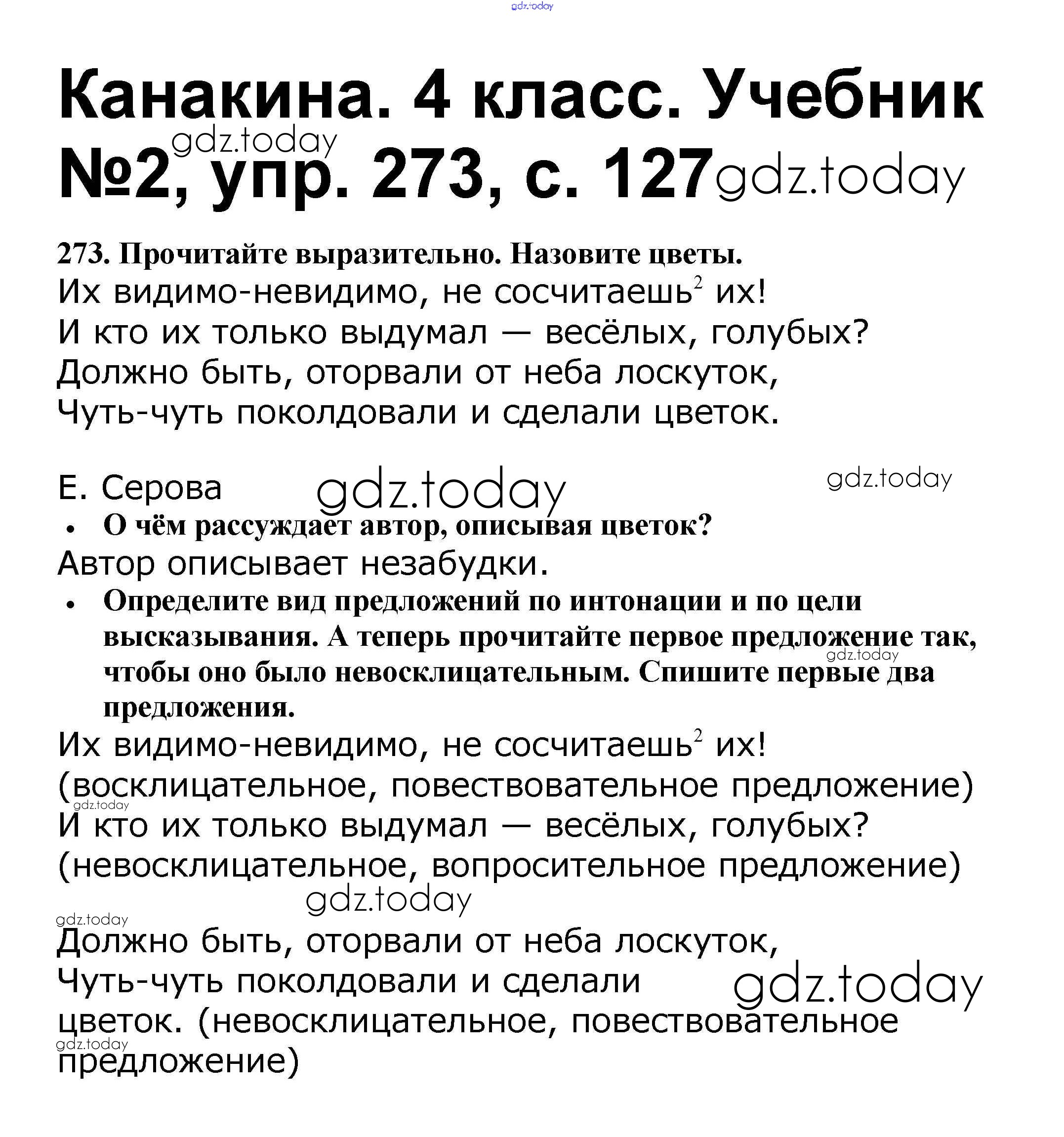 Ответы к Решение к части 2 273 Учебнику по Русскому языку для 4 класса Канакина, Горецкий Просвещение Школа России 2015