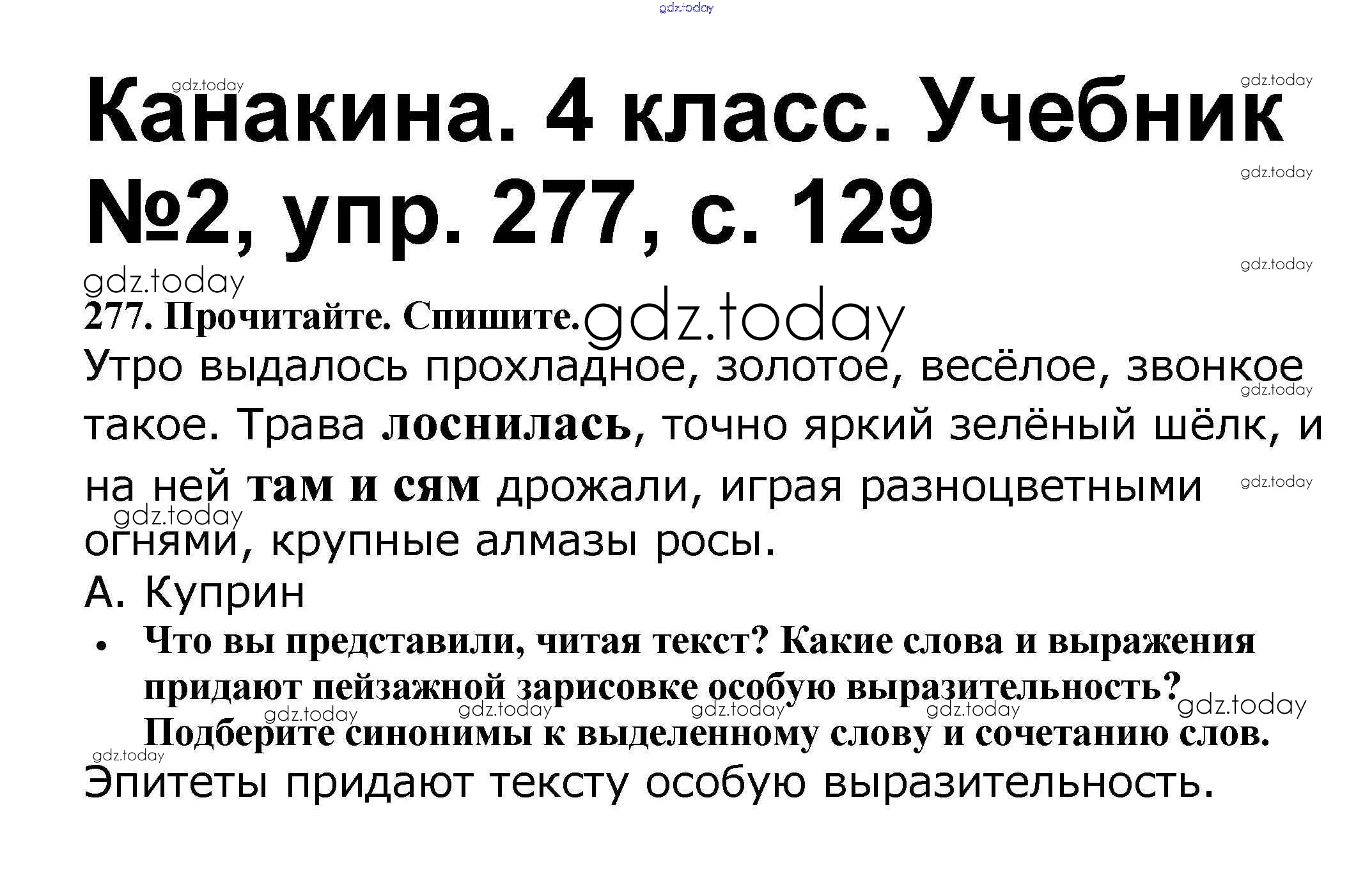 На страницах сайта gdz.today вы найдете учебный и вспомогательный материал, направленный на улучшения знаний школьной программы. ГДЗ - онлайн мир знаний Решение к части 2 277 Учебнику по Русскому языку для 4 класса Канакина, Горецкий Просвещение Школа России 2015