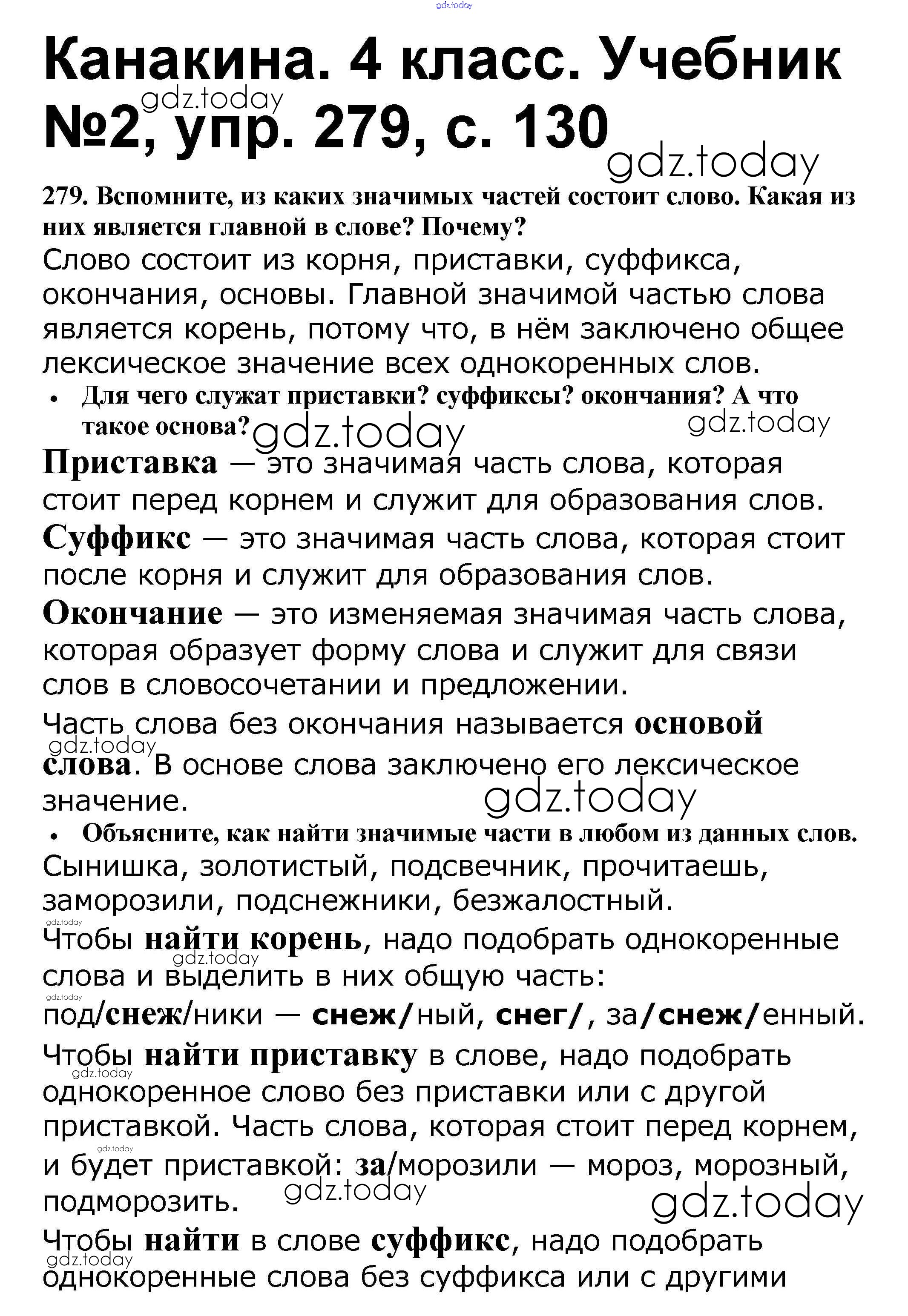 Ответы к Решение к части 2 279 Учебнику по Русскому языку для 4 класса Канакина, Горецкий Просвещение Школа России 2015
