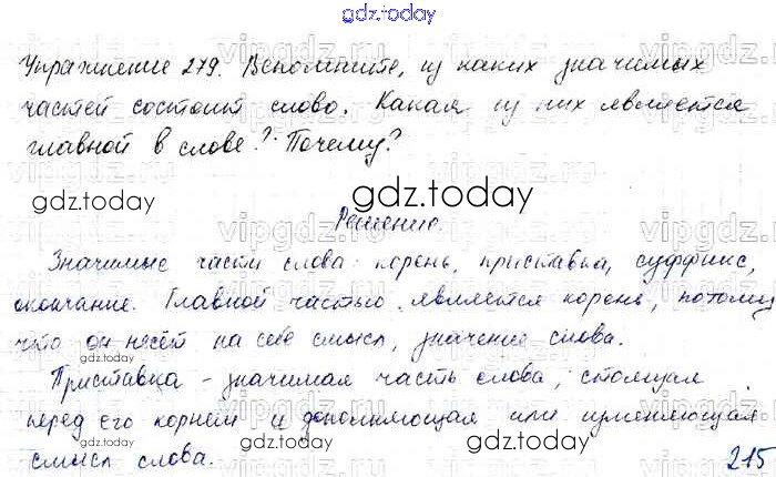 На страницах сайта gdz.today вы найдете учебный и вспомогательный материал, направленный на улучшения знаний школьной программы. ГДЗ - онлайн мир знаний Решение к части 2 279 Учебнику по Русскому языку для 4 класса Канакина, Горецкий Просвещение Школа России 2015