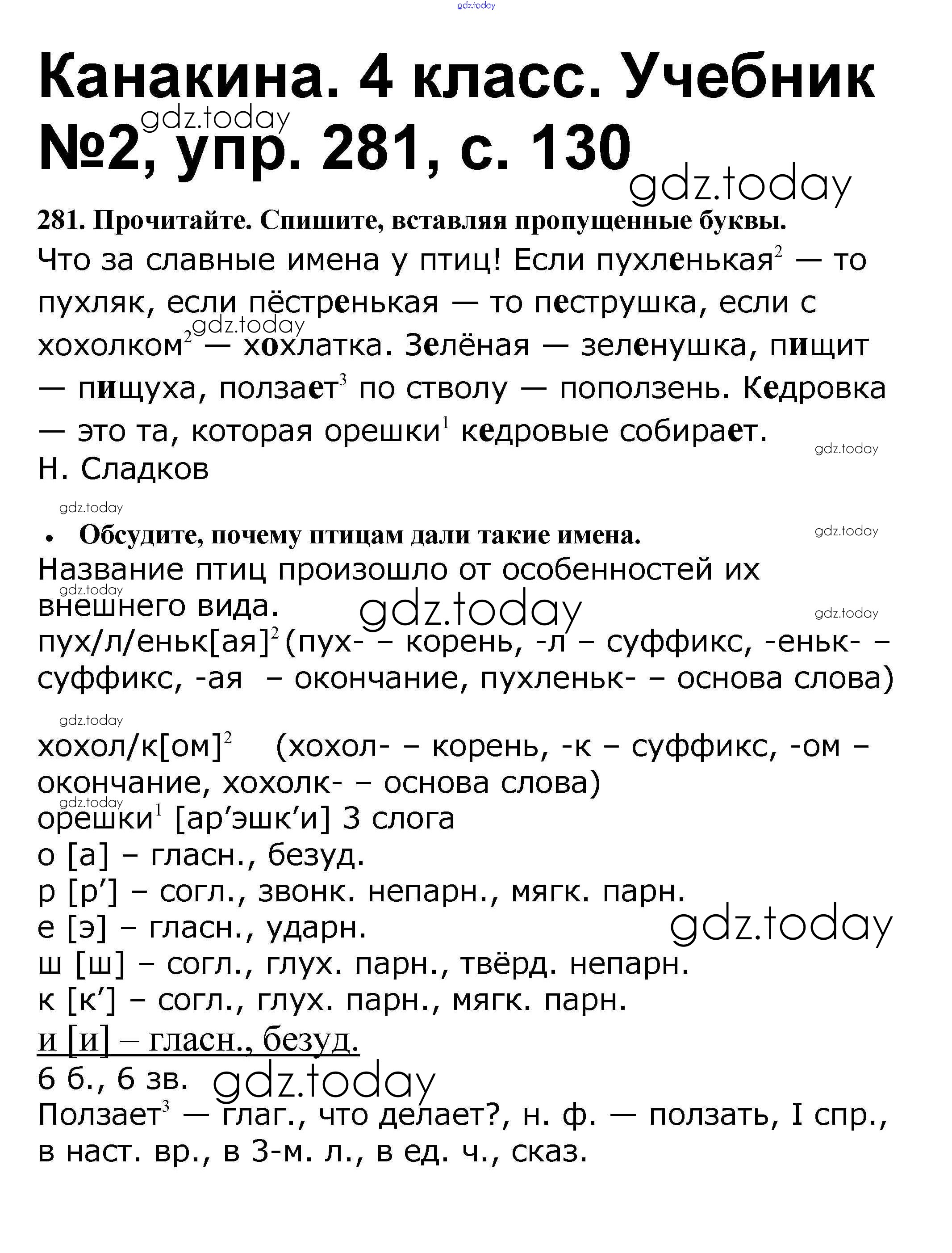 Ответы к Решение к части 2 281 Учебнику по Русскому языку для 4 класса Канакина, Горецкий Просвещение Школа России 2015