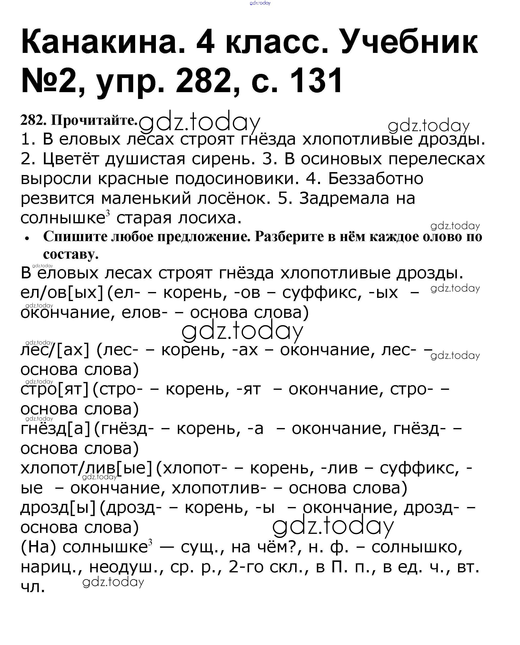 Ответы к Решение к части 2 282 Учебнику по Русскому языку для 4 класса Канакина, Горецкий Просвещение Школа России 2015