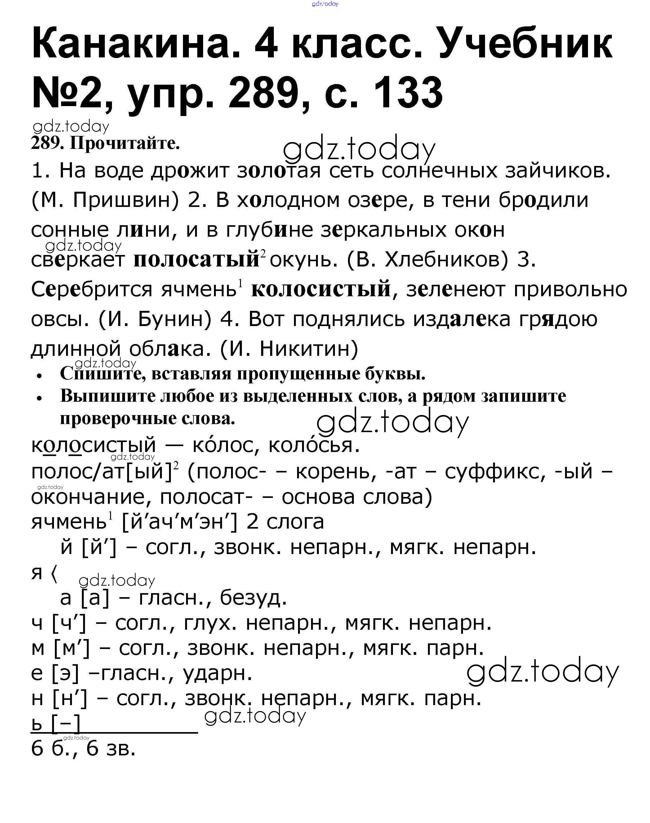 Ответы к Решение к части 2 289 Учебнику по Русскому языку для 4 класса Канакина, Горецкий Просвещение Школа России 2015