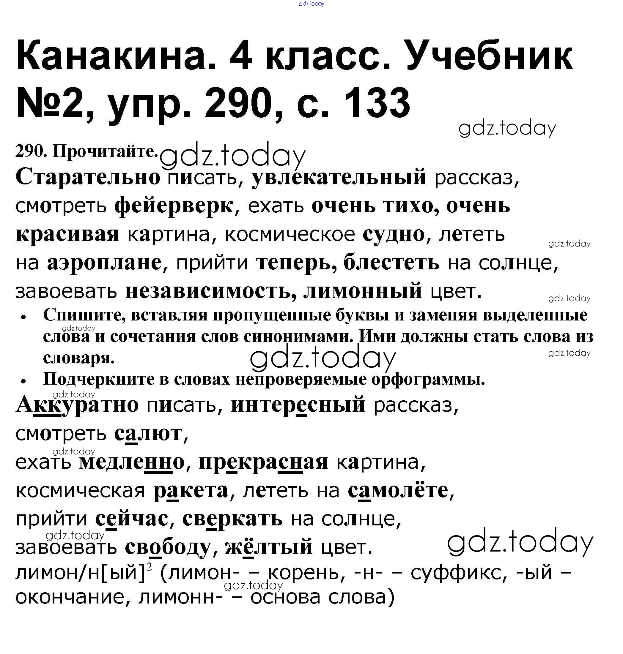 Ответы к Решение к части 2 290 Учебнику по Русскому языку для 4 класса Канакина, Горецкий Просвещение Школа России 2015