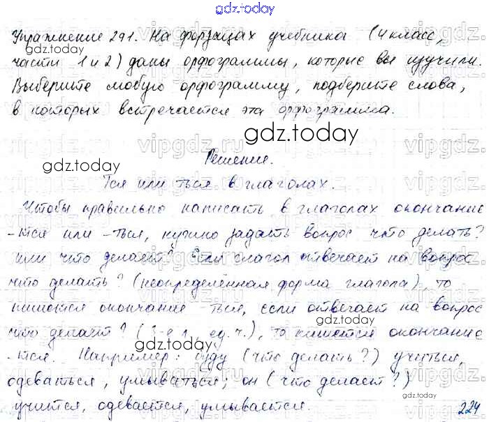 На страницах сайта gdz.today вы найдете учебный и вспомогательный материал, направленный на улучшения знаний школьной программы. ГДЗ - онлайн мир знаний Решение к части 2 291 Учебнику по Русскому языку для 4 класса Канакина, Горецкий Просвещение Школа России 2015