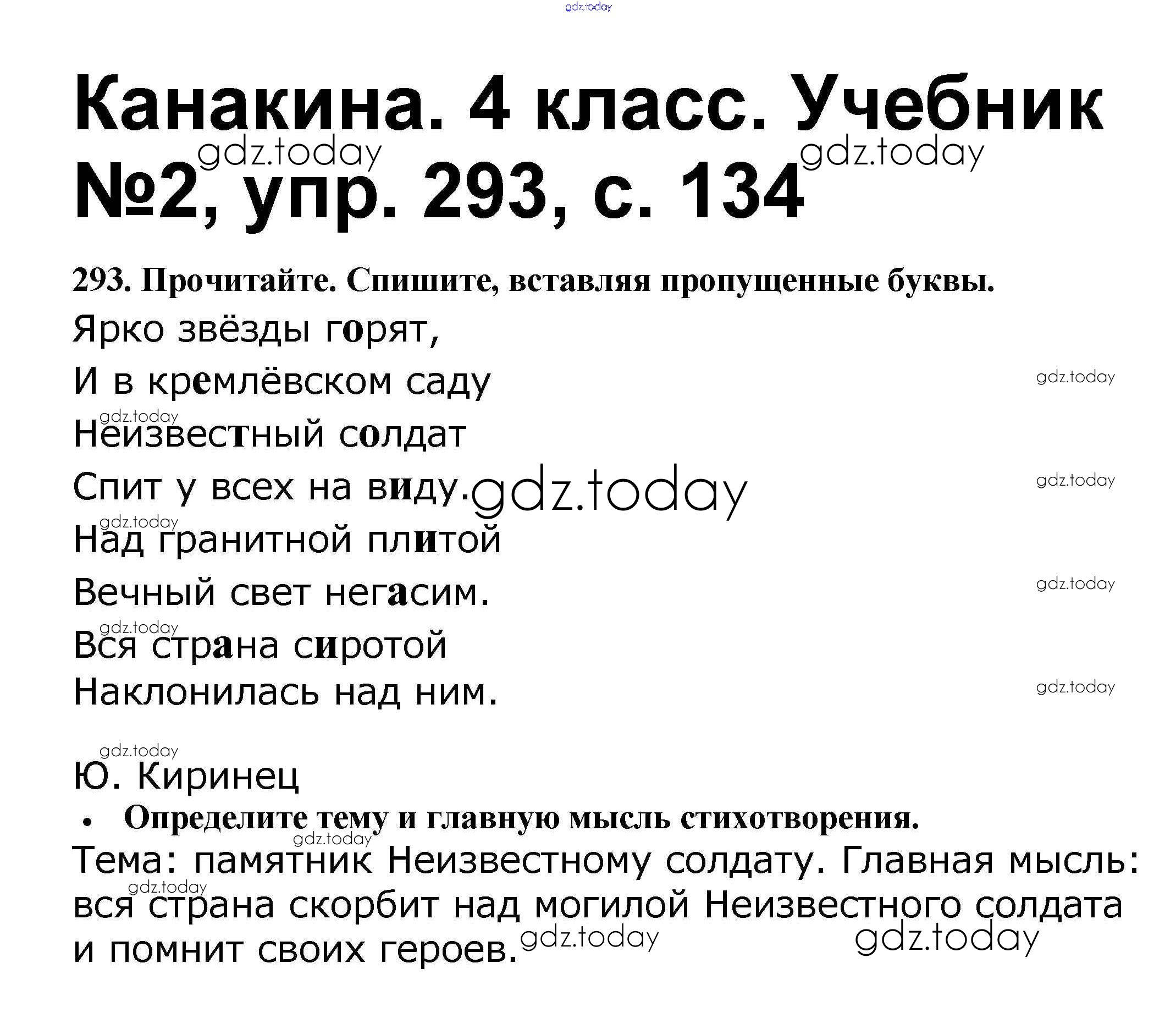 На страницах сайта gdz.today вы найдете учебный и вспомогательный материал, направленный на улучшения знаний школьной программы. ГДЗ - онлайн мир знаний Решение к части 2 293 Учебнику по Русскому языку для 4 класса Канакина, Горецкий Просвещение Школа России 2015