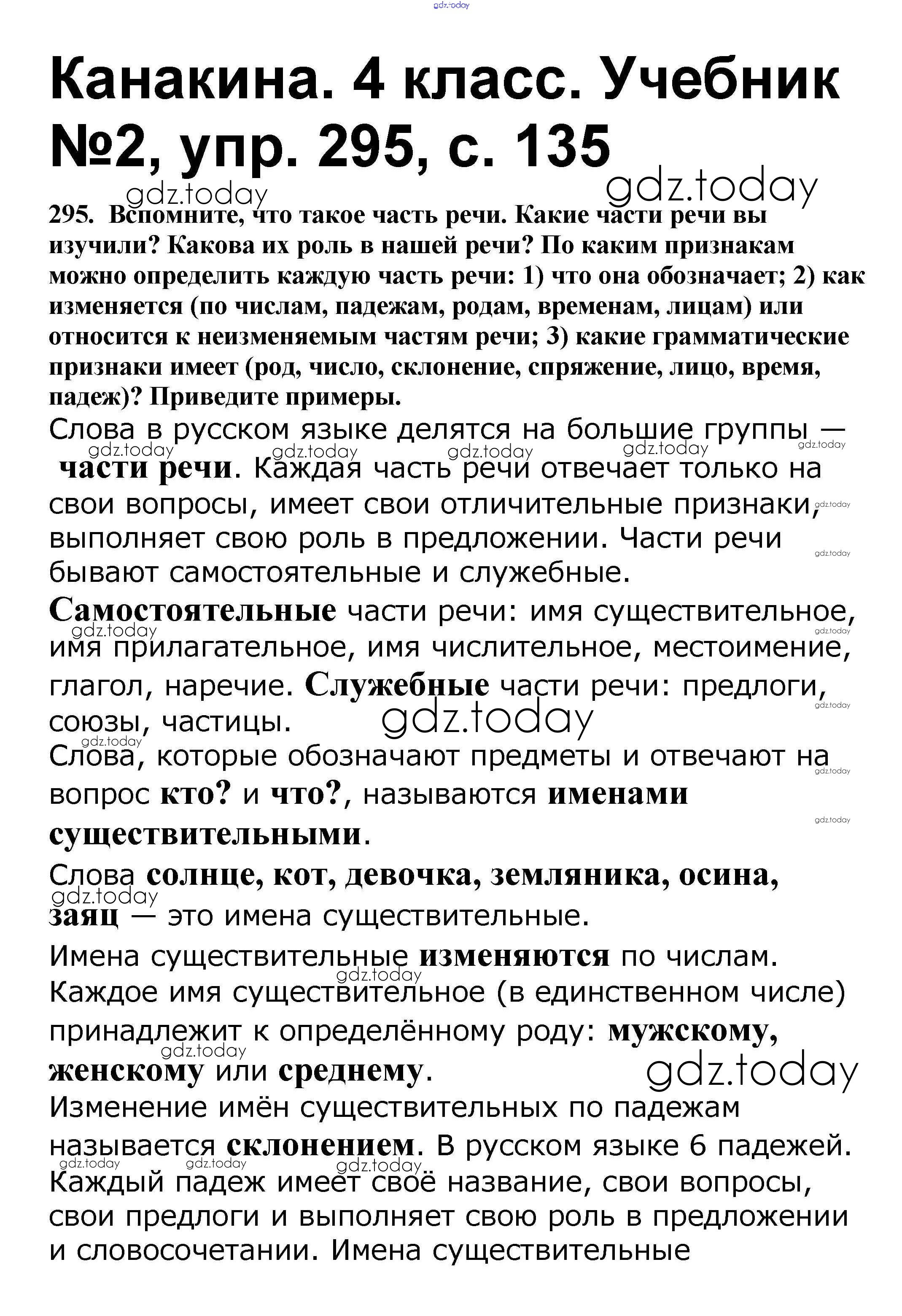 На страницах сайта gdz.today вы найдете учебный и вспомогательный материал, направленный на улучшения знаний школьной программы. ГДЗ - онлайн мир знаний Решение к части 2 295 Учебнику по Русскому языку для 4 класса Канакина, Горецкий Просвещение Школа России 2015