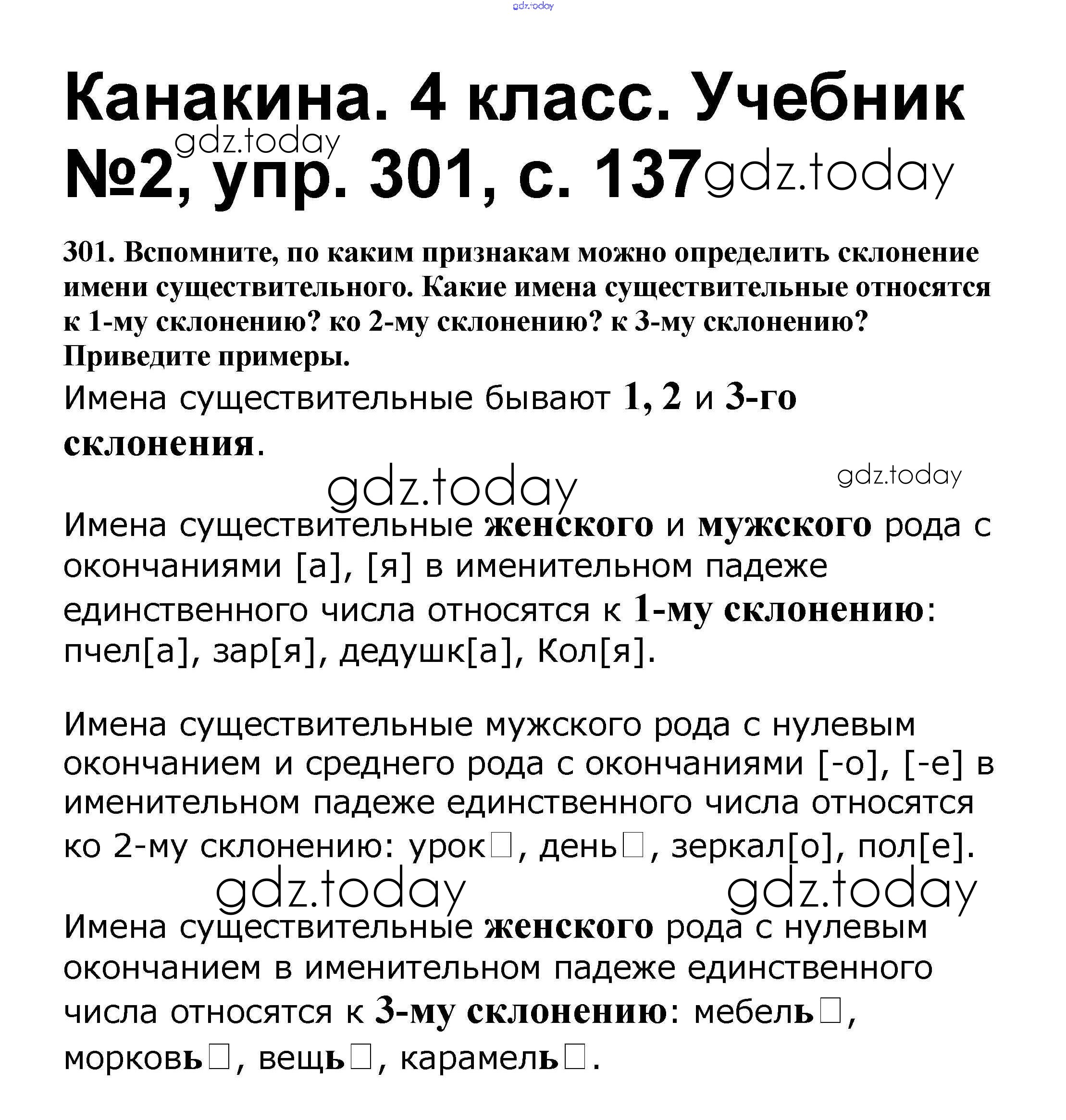 На страницах сайта gdz.today вы найдете учебный и вспомогательный материал, направленный на улучшения знаний школьной программы. ГДЗ - онлайн мир знаний Решение к части 2 301 Учебнику по Русскому языку для 4 класса Канакина, Горецкий Просвещение Школа России 2015