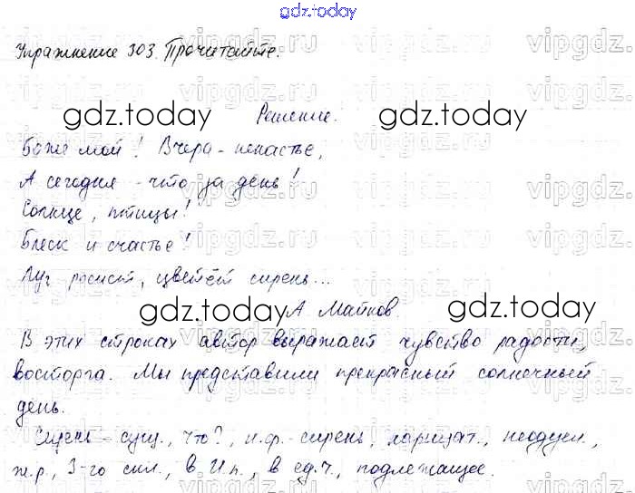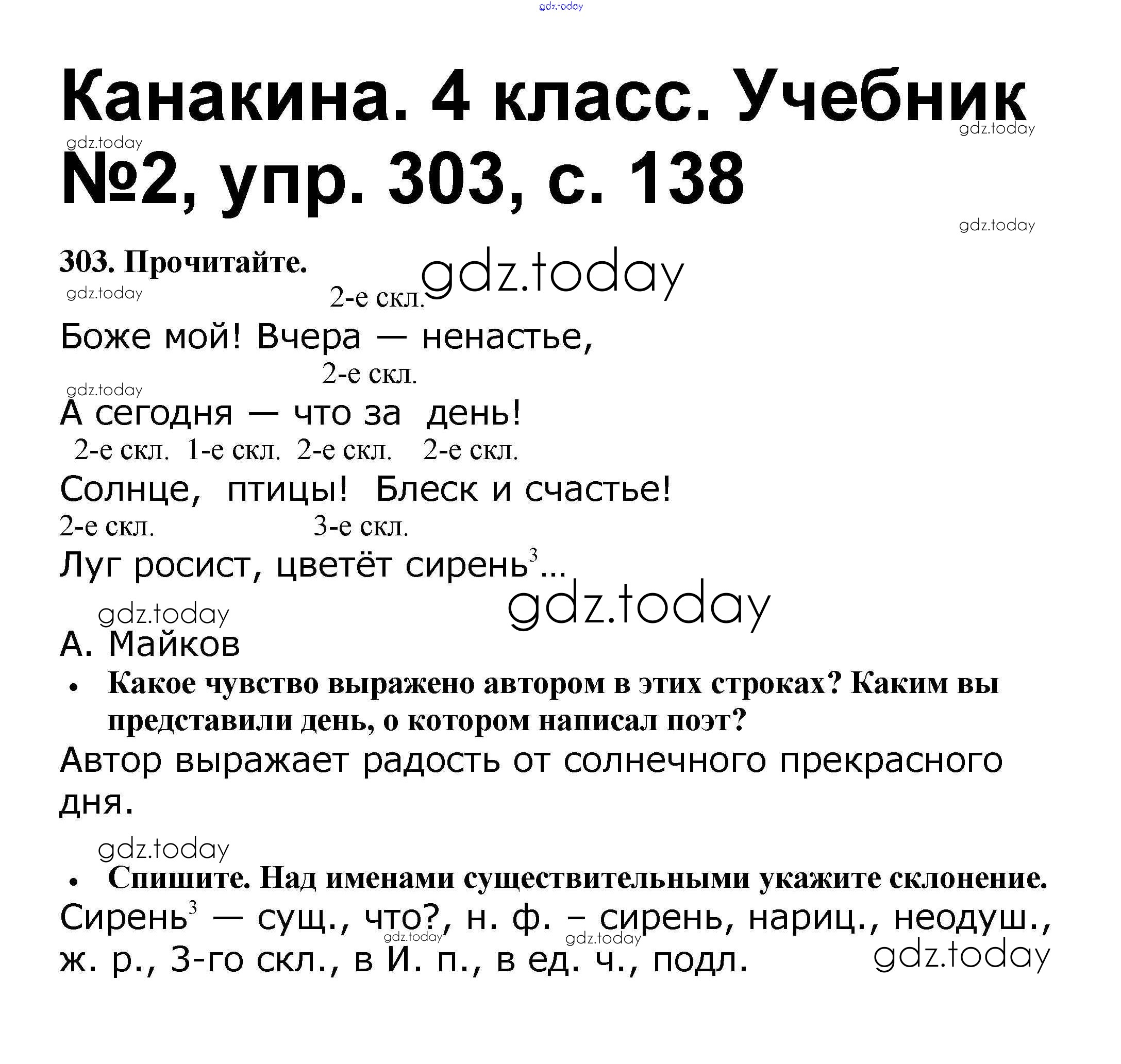 На страницах сайта gdz.today вы найдете учебный и вспомогательный материал, направленный на улучшения знаний школьной программы. ГДЗ - онлайн мир знаний Решение к части 2 303 Учебнику по Русскому языку для 4 класса Канакина, Горецкий Просвещение Школа России 2015