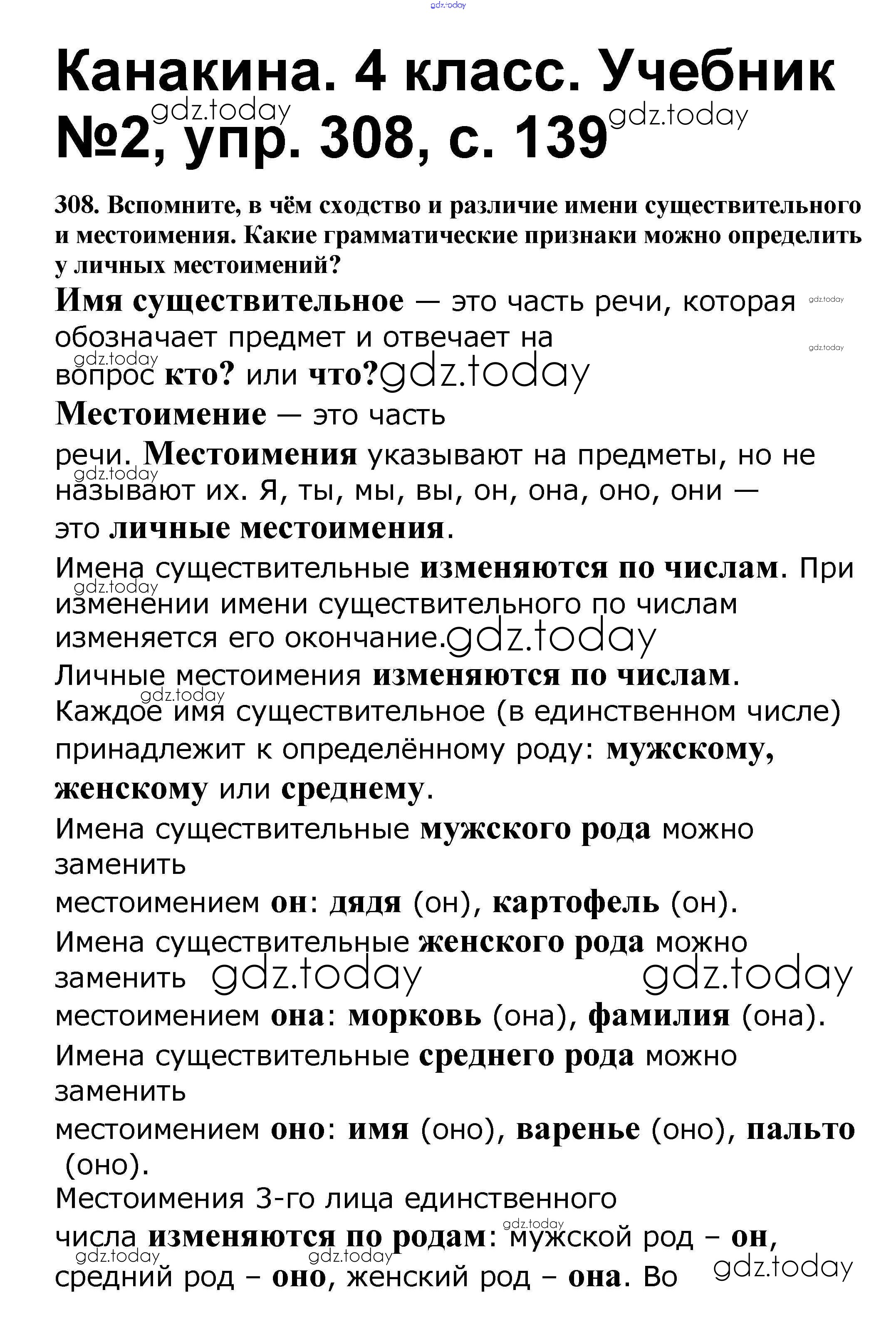 На страницах сайта gdz.today вы найдете учебный и вспомогательный материал, направленный на улучшения знаний школьной программы. ГДЗ - онлайн мир знаний Решение к части 2 308 Учебнику по Русскому языку для 4 класса Канакина, Горецкий Просвещение Школа России 2015