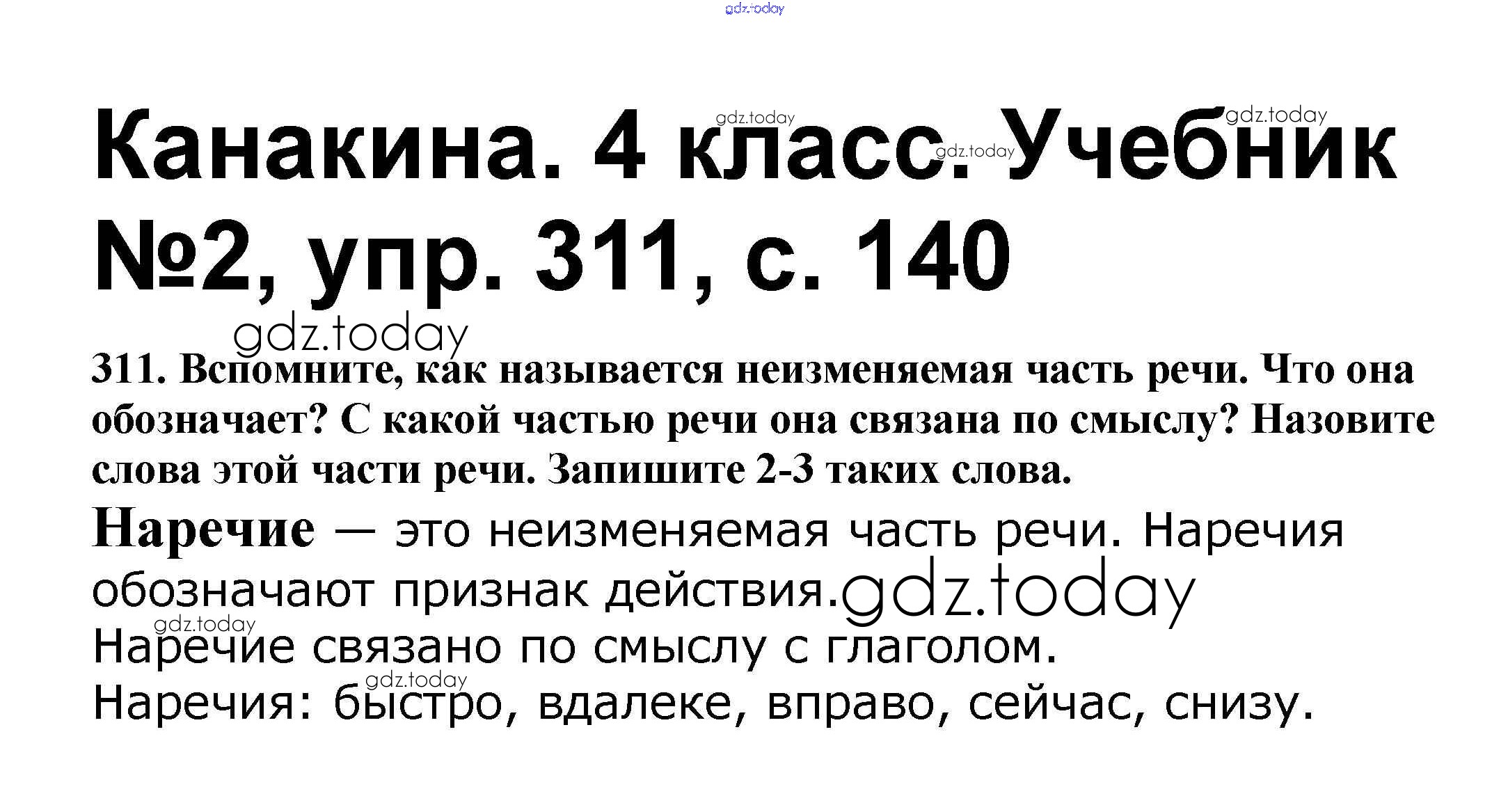 На страницах сайта gdz.today вы найдете учебный и вспомогательный материал, направленный на улучшения знаний школьной программы. ГДЗ - онлайн мир знаний Решение к части 2 311 Учебнику по Русскому языку для 4 класса Канакина, Горецкий Просвещение Школа России 2015