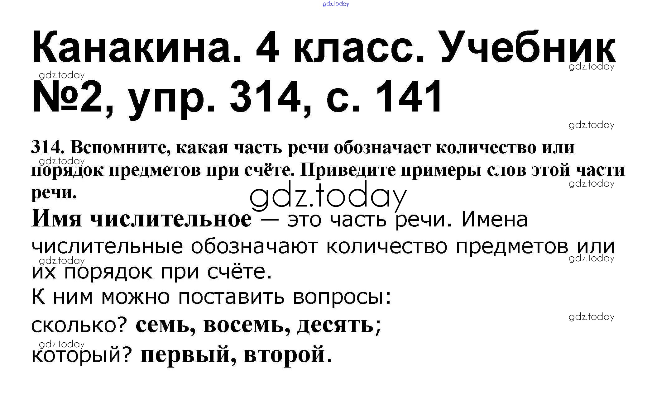 На страницах сайта gdz.today вы найдете учебный и вспомогательный материал, направленный на улучшения знаний школьной программы. ГДЗ - онлайн мир знаний Решение к части 2 314 Учебнику по Русскому языку для 4 класса Канакина, Горецкий Просвещение Школа России 2015