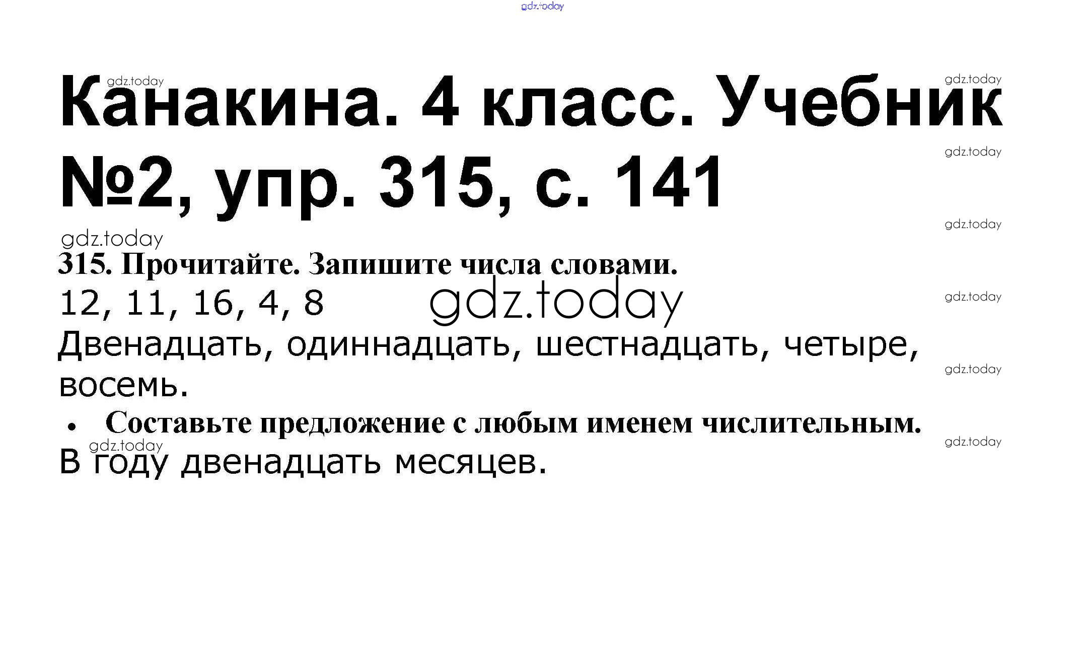 На страницах сайта gdz.today вы найдете учебный и вспомогательный материал, направленный на улучшения знаний школьной программы. ГДЗ - онлайн мир знаний Решение к части 2 315 Учебнику по Русскому языку для 4 класса Канакина, Горецкий Просвещение Школа России 2015
