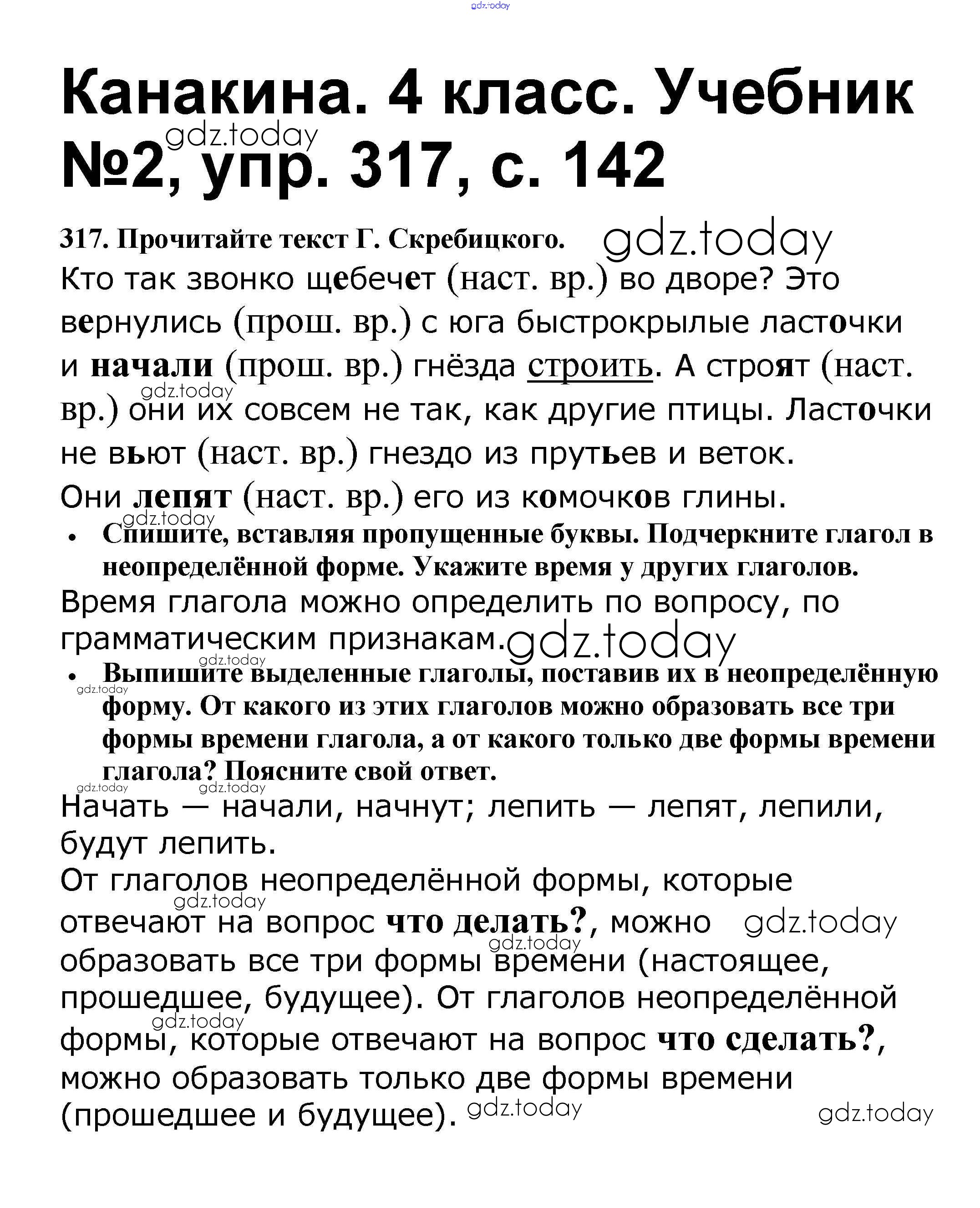 Ответы к Решение к части 2 317 Учебнику по Русскому языку для 4 класса Канакина, Горецкий Просвещение Школа России 2015