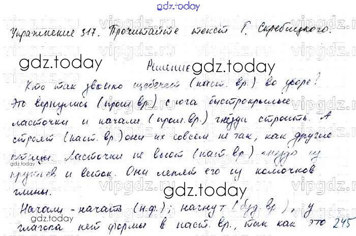 На страницах сайта gdz.today вы найдете учебный и вспомогательный материал, направленный на улучшения знаний школьной программы. ГДЗ - онлайн мир знаний Решение к части 2 317 Учебнику по Русскому языку для 4 класса Канакина, Горецкий Просвещение Школа России 2015