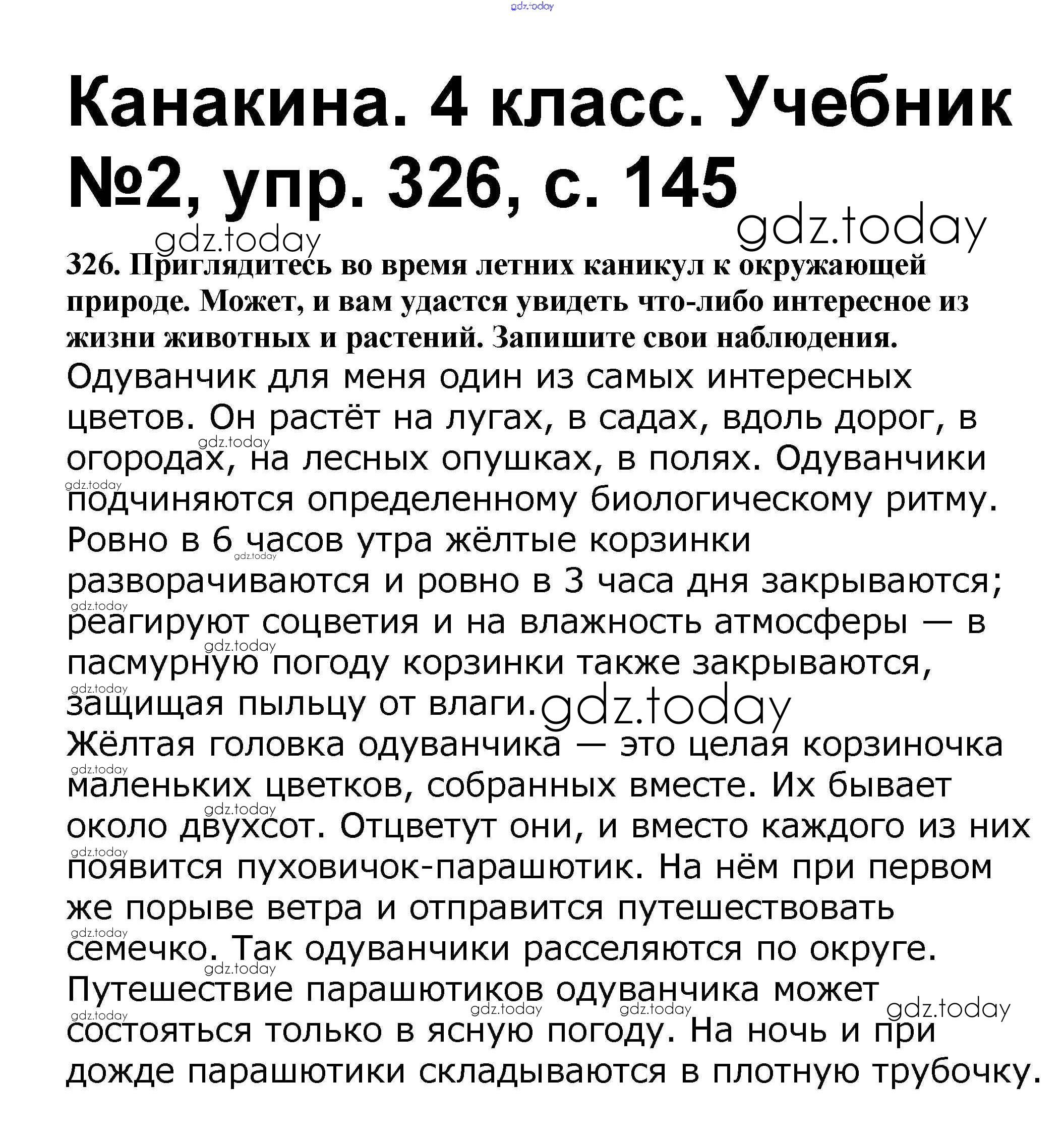 На страницах сайта gdz.today вы найдете учебный и вспомогательный материал, направленный на улучшения знаний школьной программы. ГДЗ - онлайн мир знаний Решение к части 2 326 Учебнику по Русскому языку для 4 класса Канакина, Горецкий Просвещение Школа России 2015