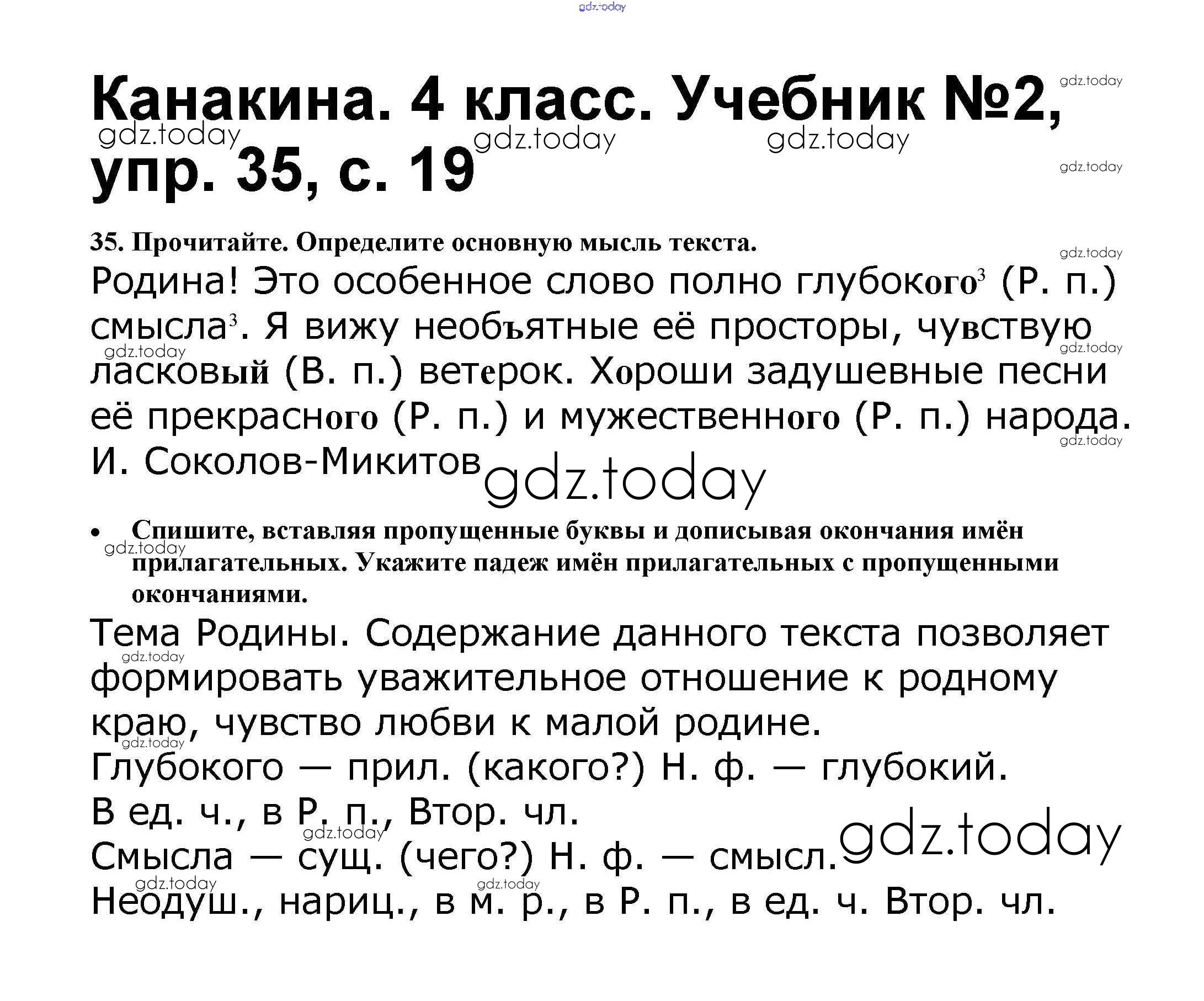 На страницах сайта gdz.today вы найдете учебный и вспомогательный материал, направленный на улучшения знаний школьной программы. ГДЗ - онлайн мир знаний Решение к части 2 35 Учебнику по Русскому языку для 4 класса Канакина, Горецкий Просвещение Школа России 2015