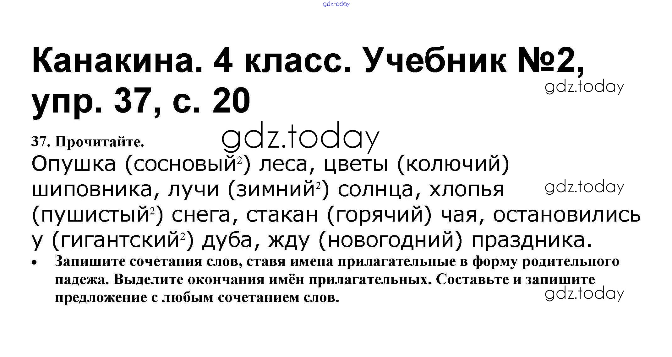На страницах сайта gdz.today вы найдете учебный и вспомогательный материал, направленный на улучшения знаний школьной программы. ГДЗ - онлайн мир знаний Решение к части 2 37 Учебнику по Русскому языку для 4 класса Канакина, Горецкий Просвещение Школа России 2015