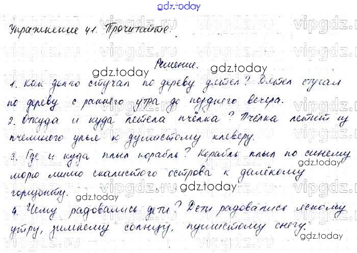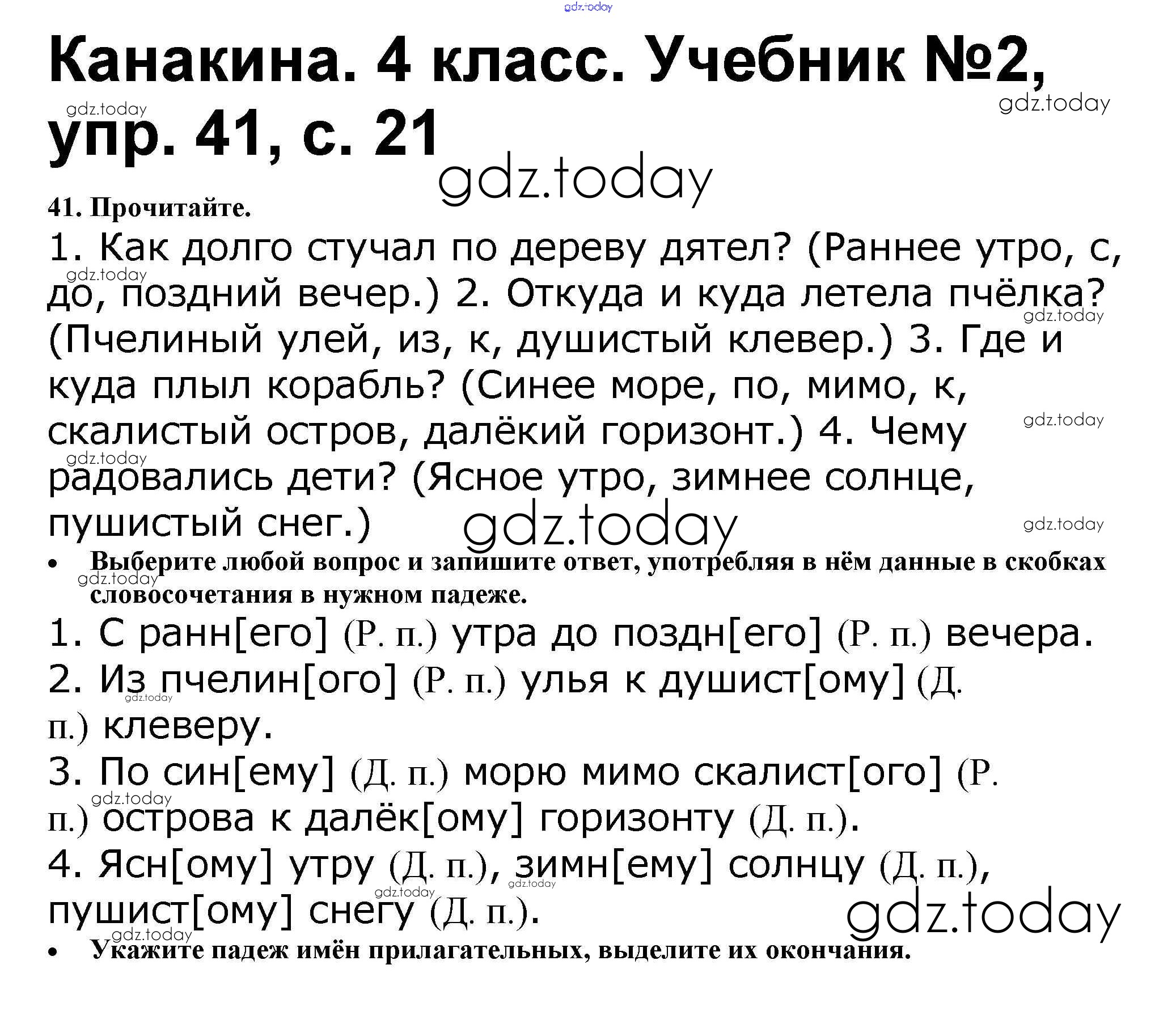 На страницах сайта gdz.today вы найдете учебный и вспомогательный материал, направленный на улучшения знаний школьной программы. ГДЗ - онлайн мир знаний Решение к части 2 41 Учебнику по Русскому языку для 4 класса Канакина, Горецкий Просвещение Школа России 2015