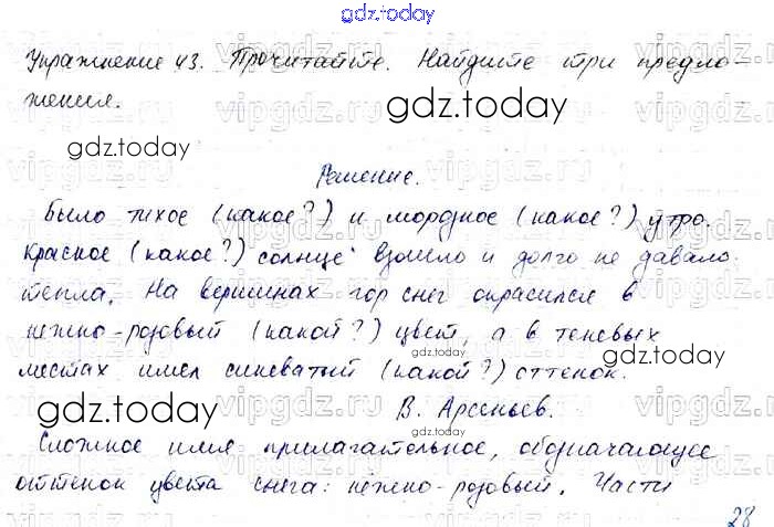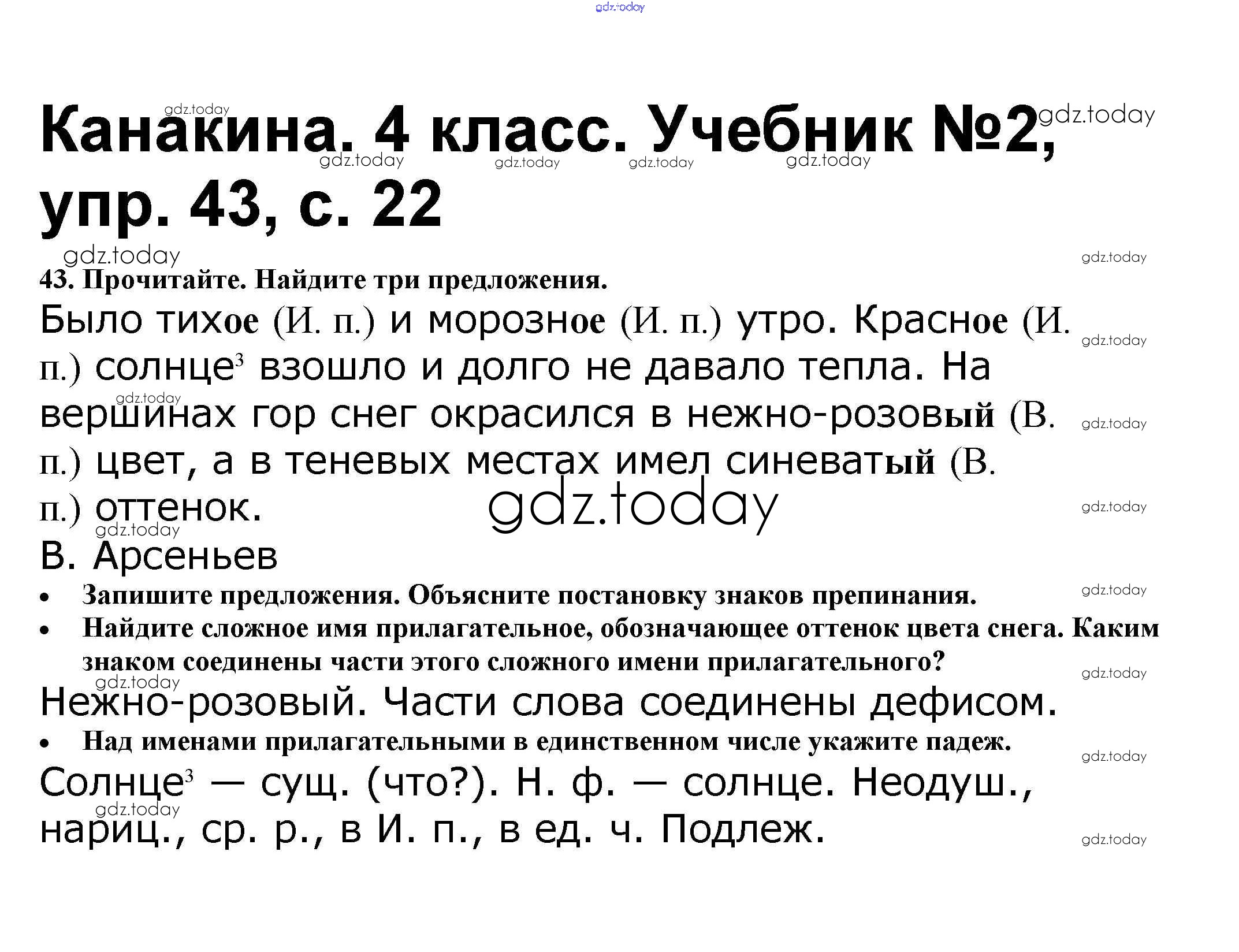 На страницах сайта gdz.today вы найдете учебный и вспомогательный материал, направленный на улучшения знаний школьной программы. ГДЗ - онлайн мир знаний Решение к части 2 43 Учебнику по Русскому языку для 4 класса Канакина, Горецкий Просвещение Школа России 2015
