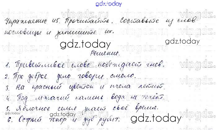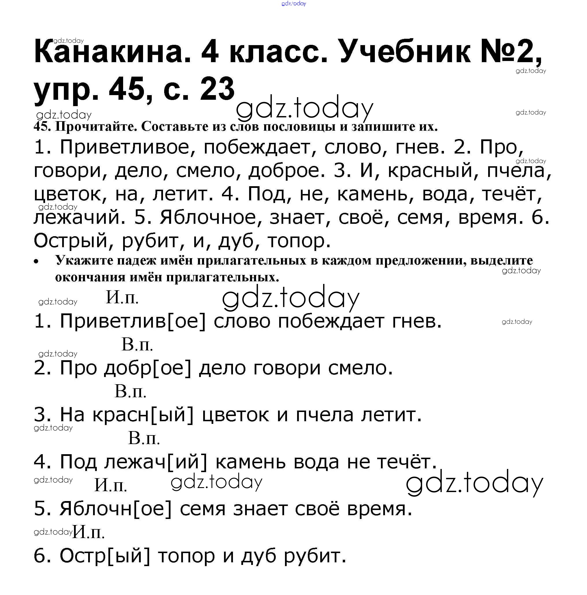 На страницах сайта gdz.today вы найдете учебный и вспомогательный материал, направленный на улучшения знаний школьной программы. ГДЗ - онлайн мир знаний Решение к части 2 45 Учебнику по Русскому языку для 4 класса Канакина, Горецкий Просвещение Школа России 2015