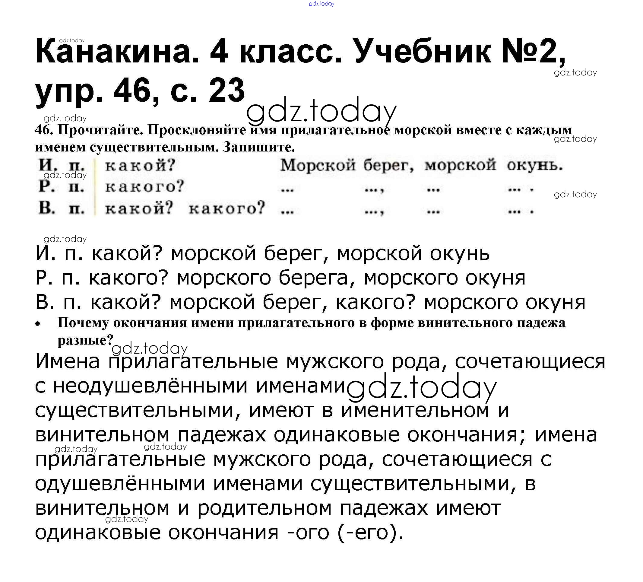 Ответы к Решение к части 2 46 Учебнику по Русскому языку для 4 класса Канакина, Горецкий Просвещение Школа России 2015