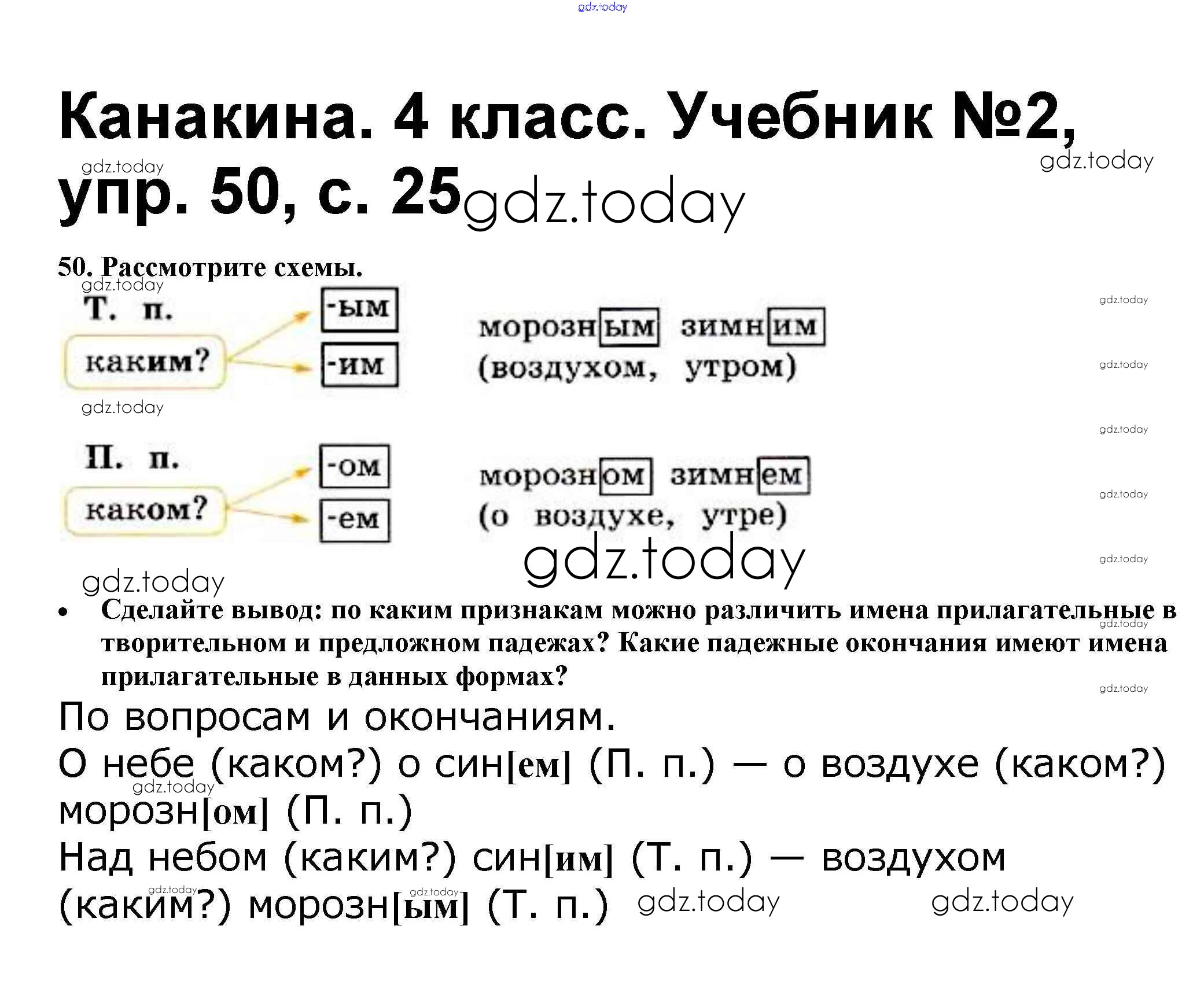Ответы к Решение к части 2 50 Учебнику по Русскому языку для 4 класса Канакина, Горецкий Просвещение Школа России 2015