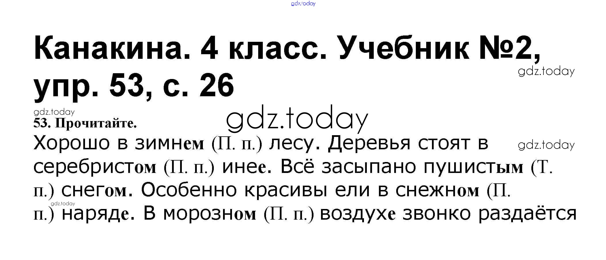 На страницах сайта gdz.today вы найдете учебный и вспомогательный материал, направленный на улучшения знаний школьной программы. ГДЗ - онлайн мир знаний Решение к части 2 53 Учебнику по Русскому языку для 4 класса Канакина, Горецкий Просвещение Школа России 2015