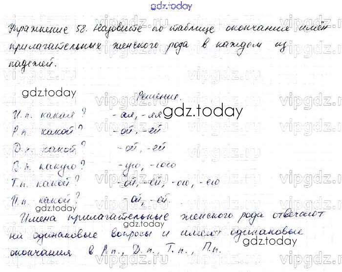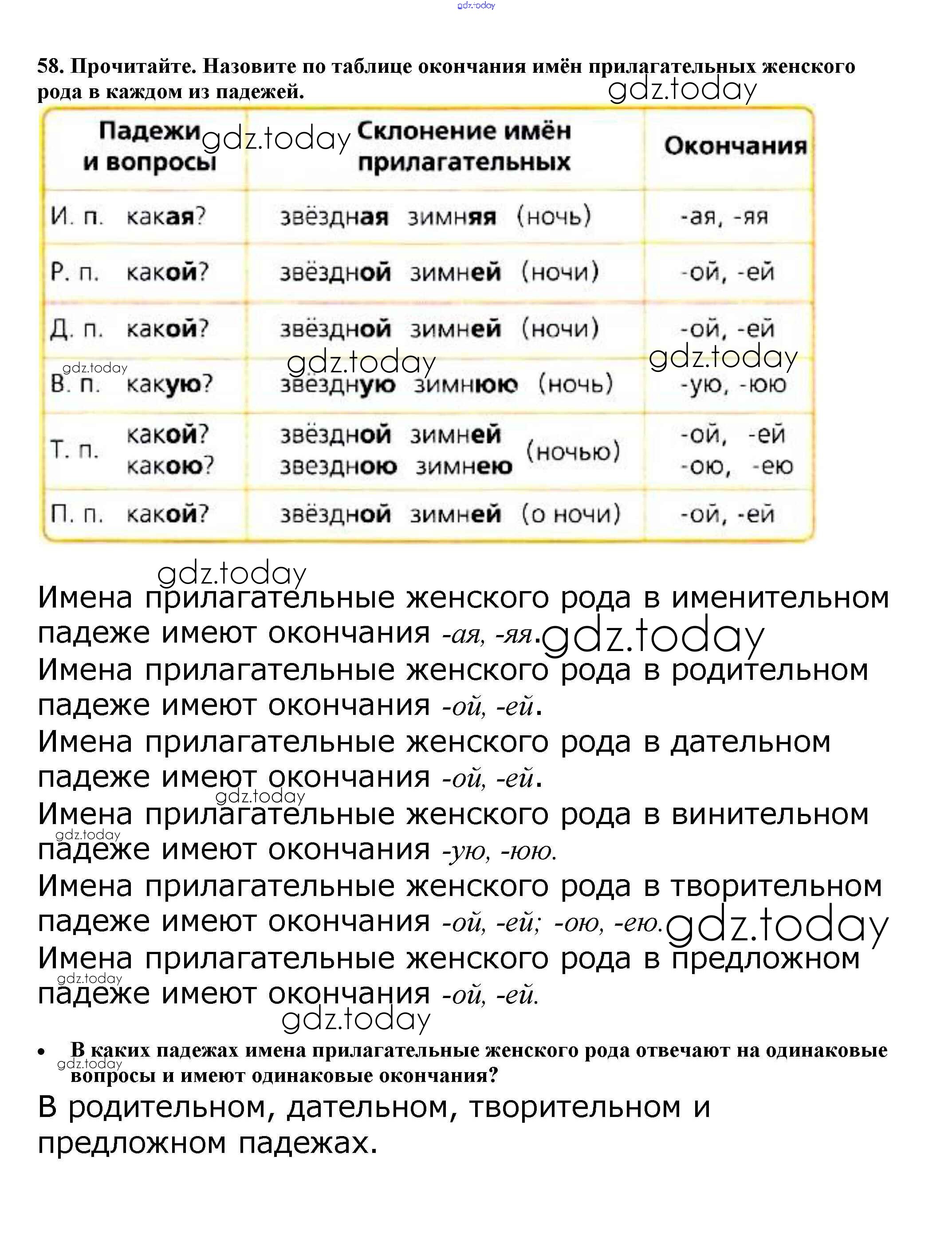 Ответы к Решение к части 2 58 Учебнику по Русскому языку для 4 класса Канакина, Горецкий Просвещение Школа России 2015