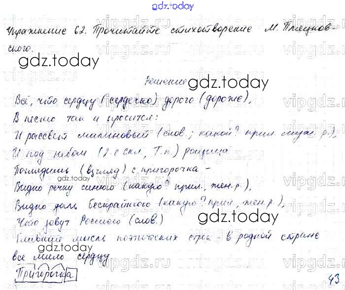 На страницах сайта gdz.today вы найдете учебный и вспомогательный материал, направленный на улучшения знаний школьной программы. ГДЗ - онлайн мир знаний Решение к части 2 62 Учебнику по Русскому языку для 4 класса Канакина, Горецкий Просвещение Школа России 2015