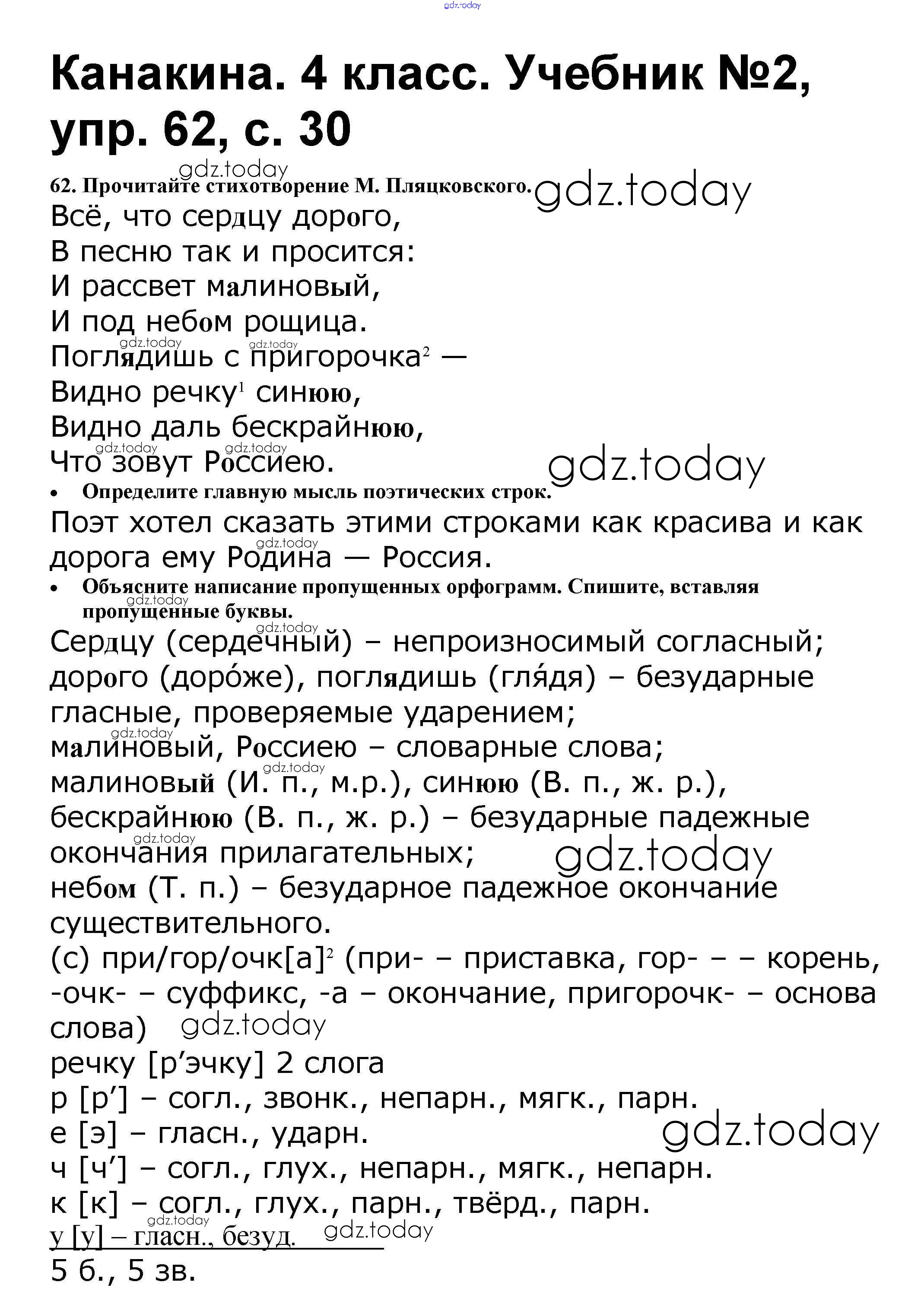 Ответы к Решение к части 2 62 Учебнику по Русскому языку для 4 класса Канакина, Горецкий Просвещение Школа России 2015