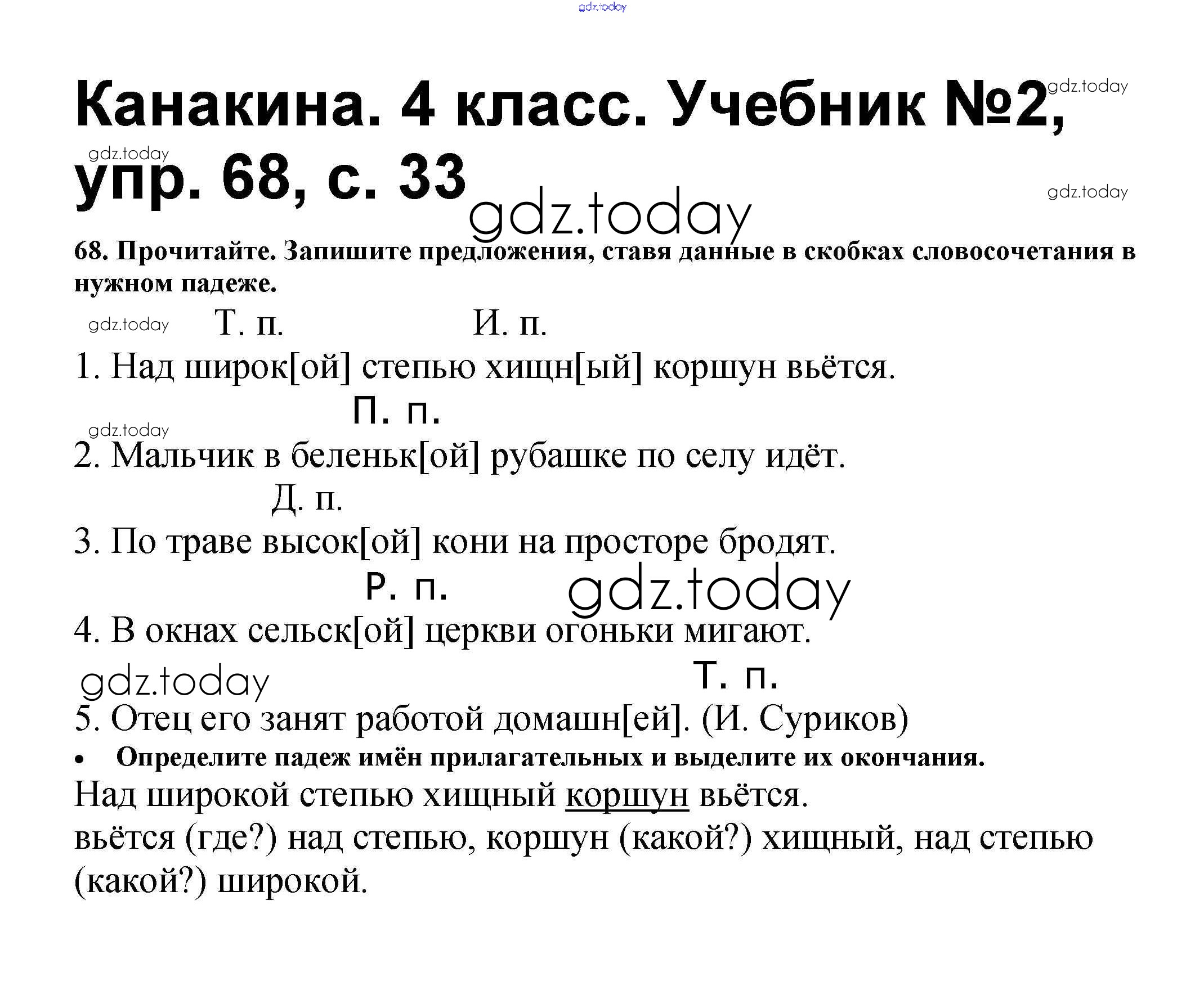 Ответы к Решение к части 2 68 Учебнику по Русскому языку для 4 класса Канакина, Горецкий Просвещение Школа России 2015