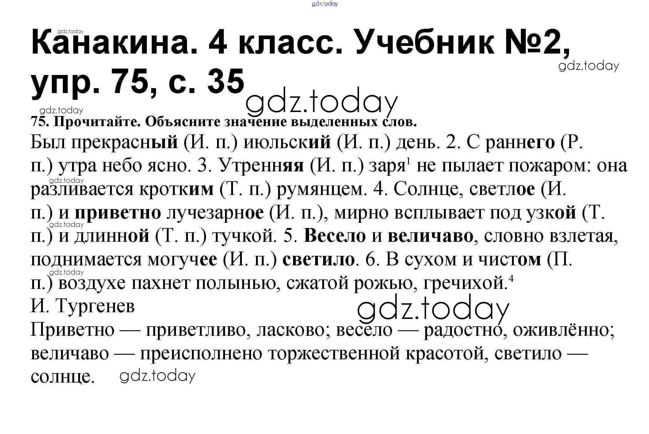 Ответы к Решение к части 2 75 Учебнику по Русскому языку для 4 класса Канакина, Горецкий Просвещение Школа России 2015