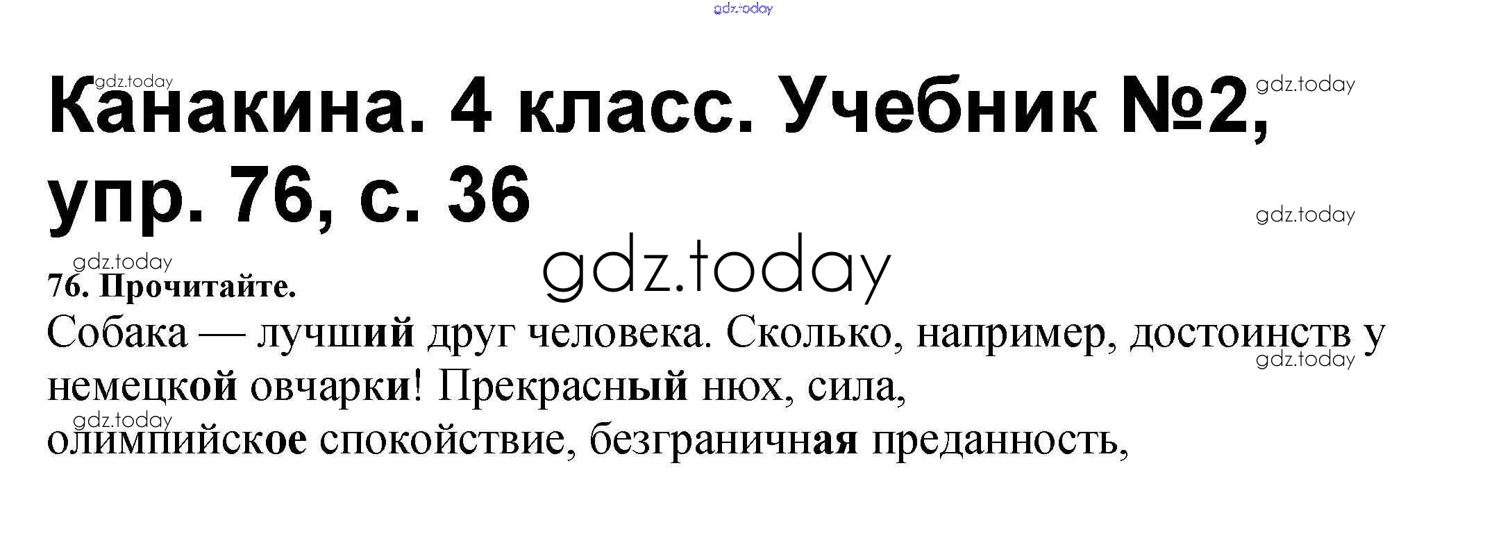 На страницах сайта gdz.today вы найдете учебный и вспомогательный материал, направленный на улучшения знаний школьной программы. ГДЗ - онлайн мир знаний Решение к части 2 76 Учебнику по Русскому языку для 4 класса Канакина, Горецкий Просвещение Школа России 2015